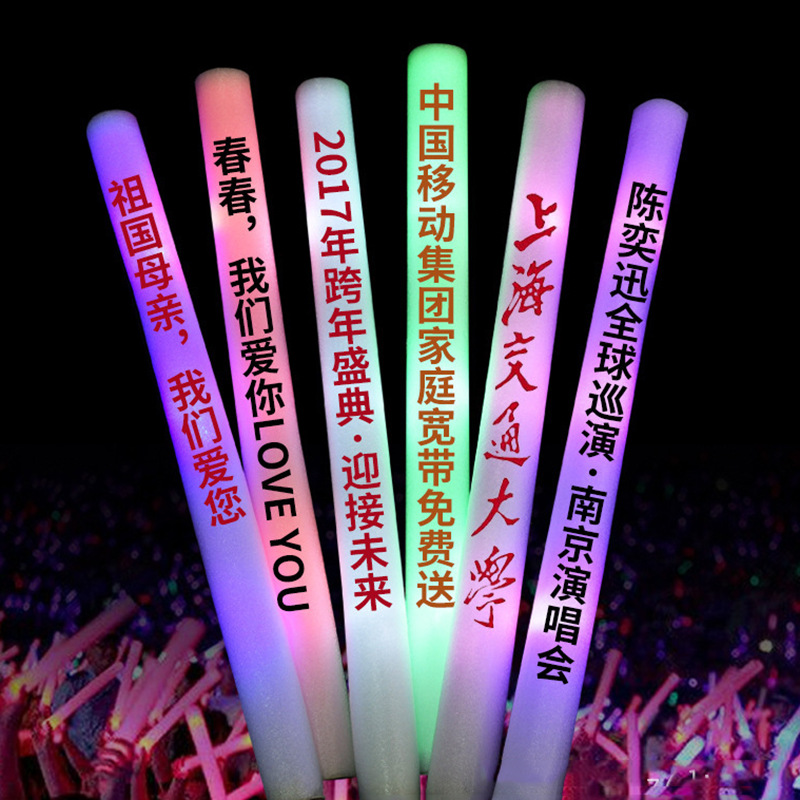 现货供应演唱会定 制LOGO 助威道具荧光棒七彩海绵泡沫棒发光玩具