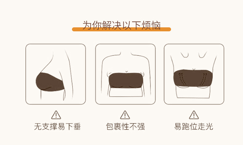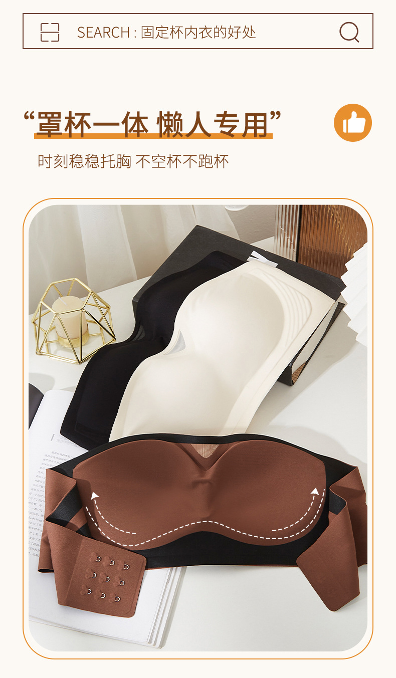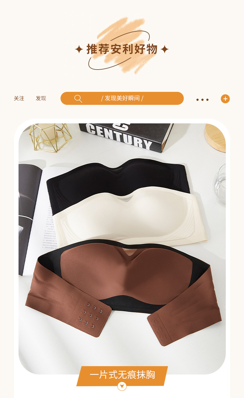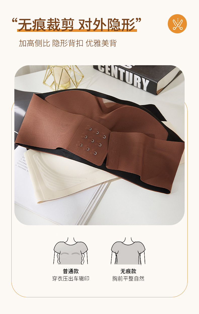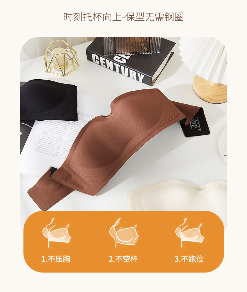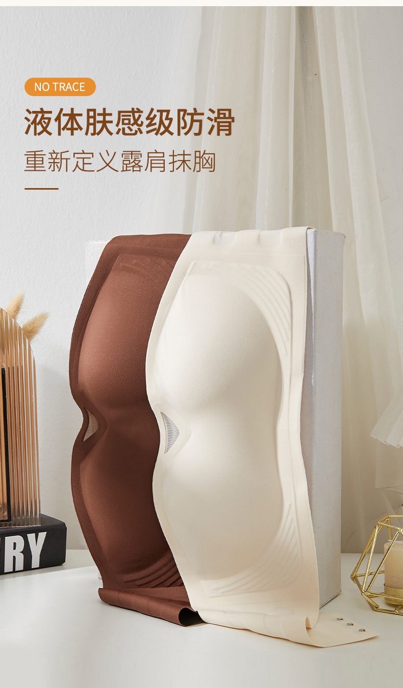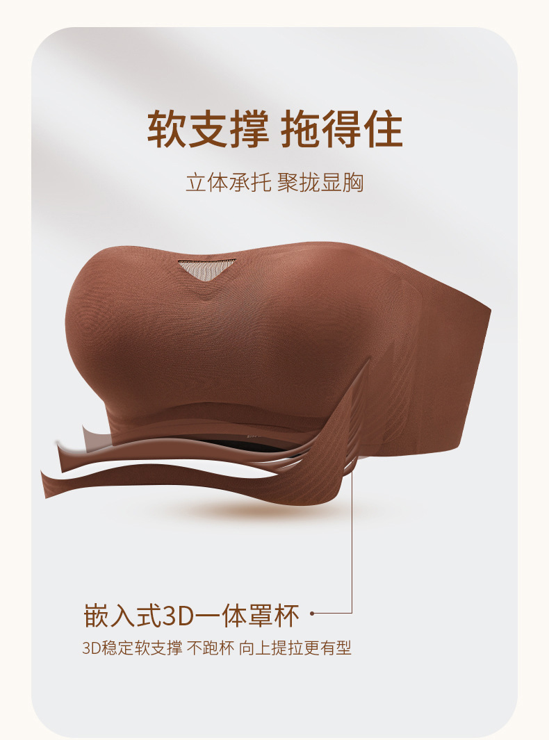 无肩带无痕内衣女3D聚拢无钢圈收副乳抹胸裹胸防滑固定杯隐形文胸