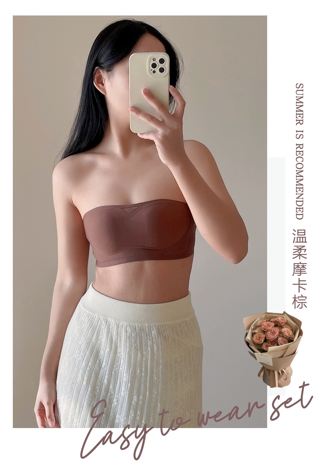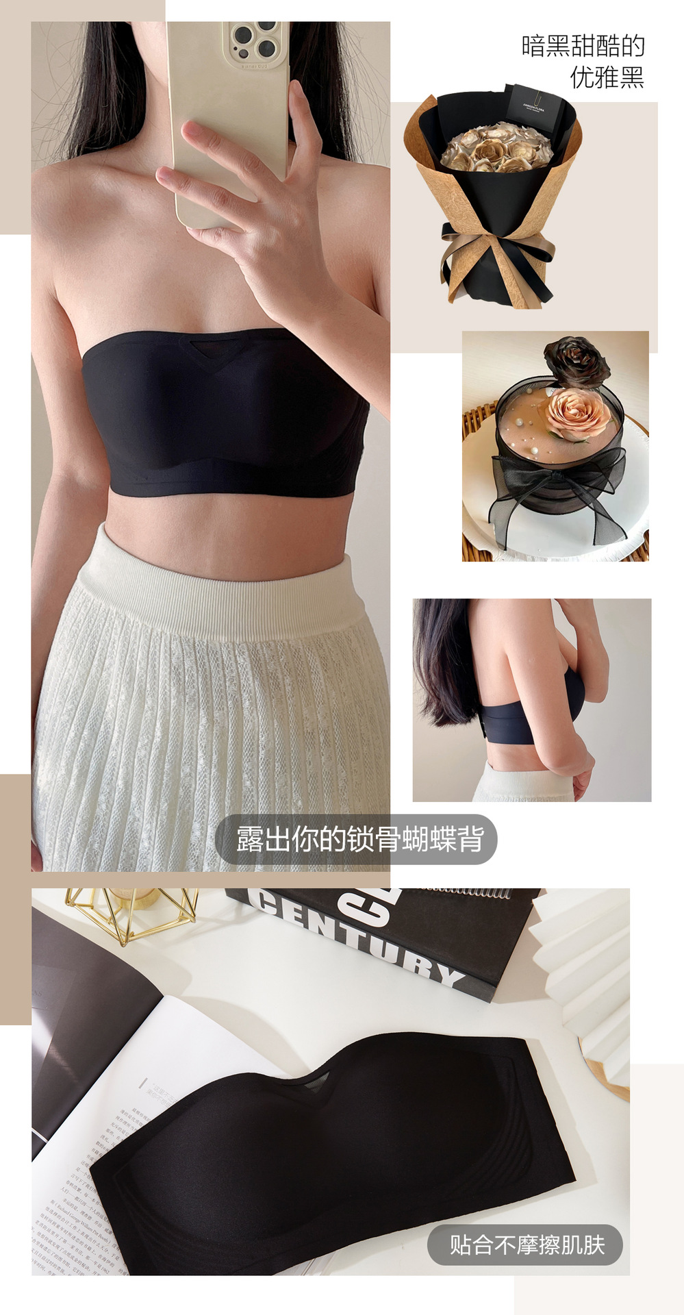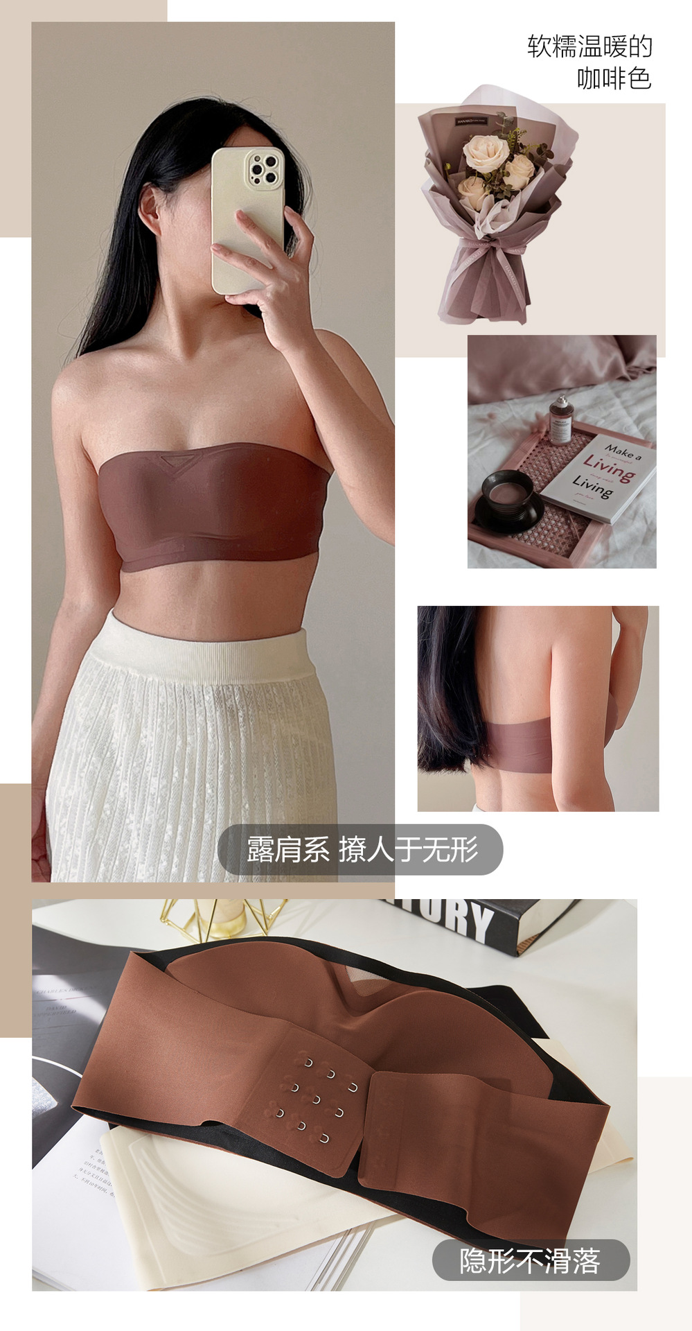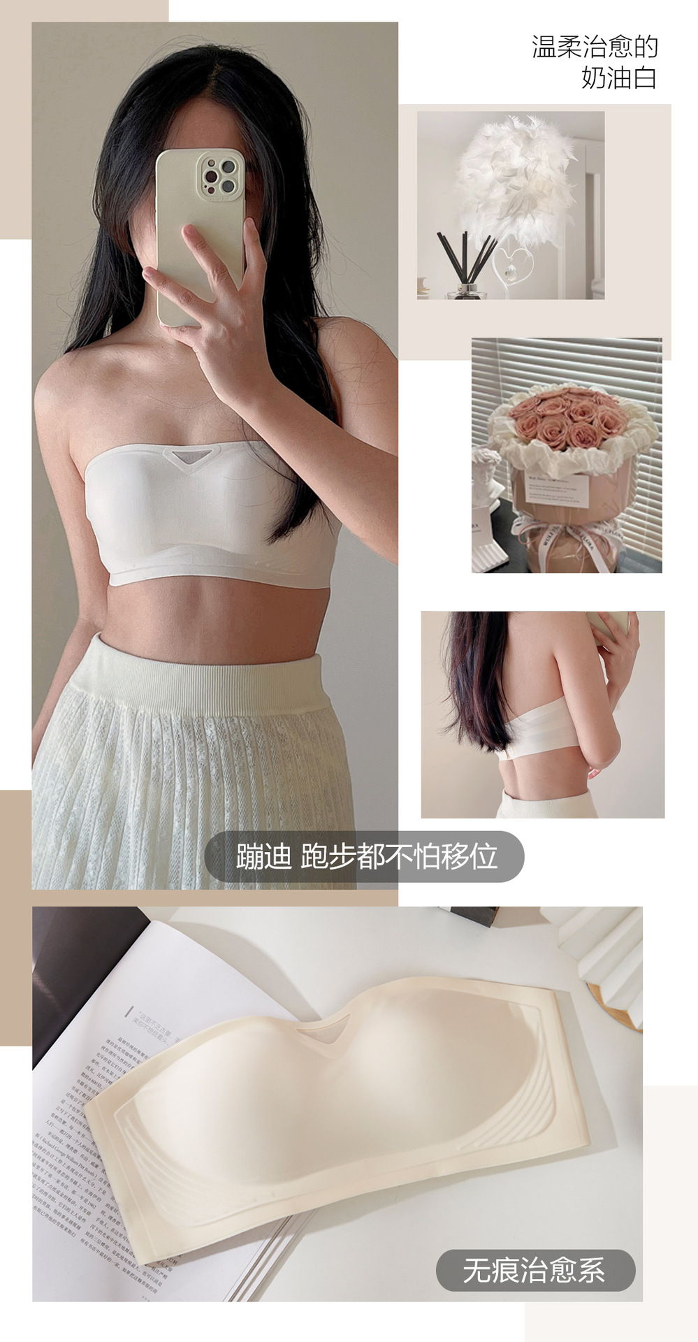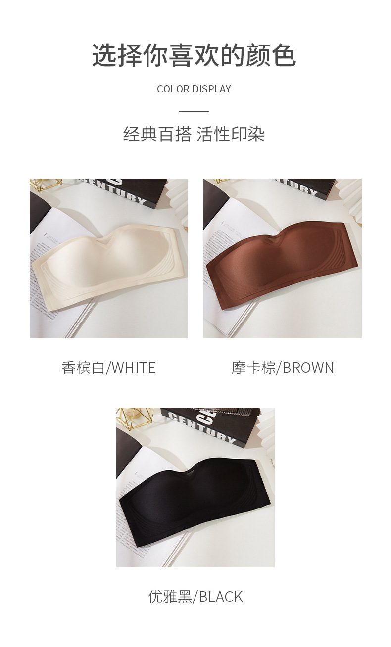 无肩带无痕内衣女3D聚拢无钢圈收副乳抹胸裹胸防滑固定杯隐形文胸