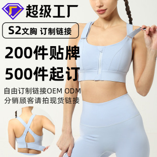 大码运动内衣女防震健身跑步瑜伽一片式前拉链肩带可调节文胸批发