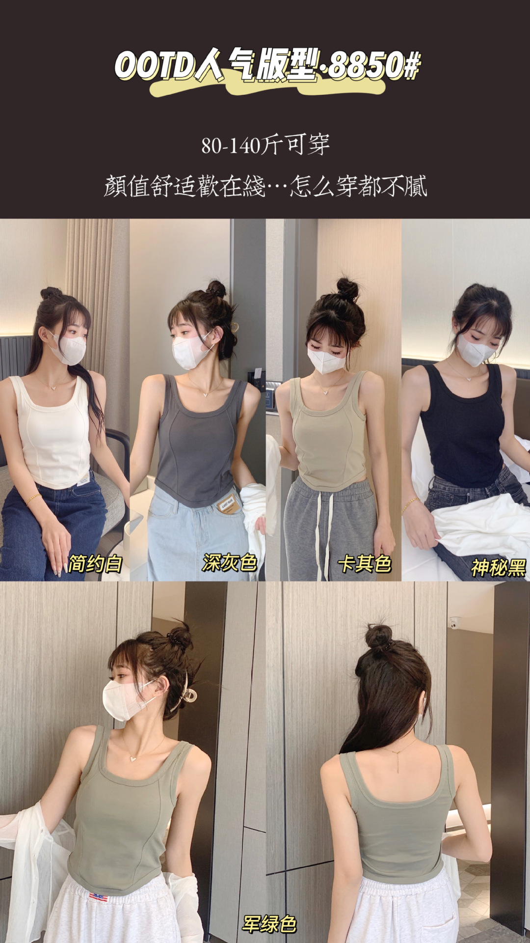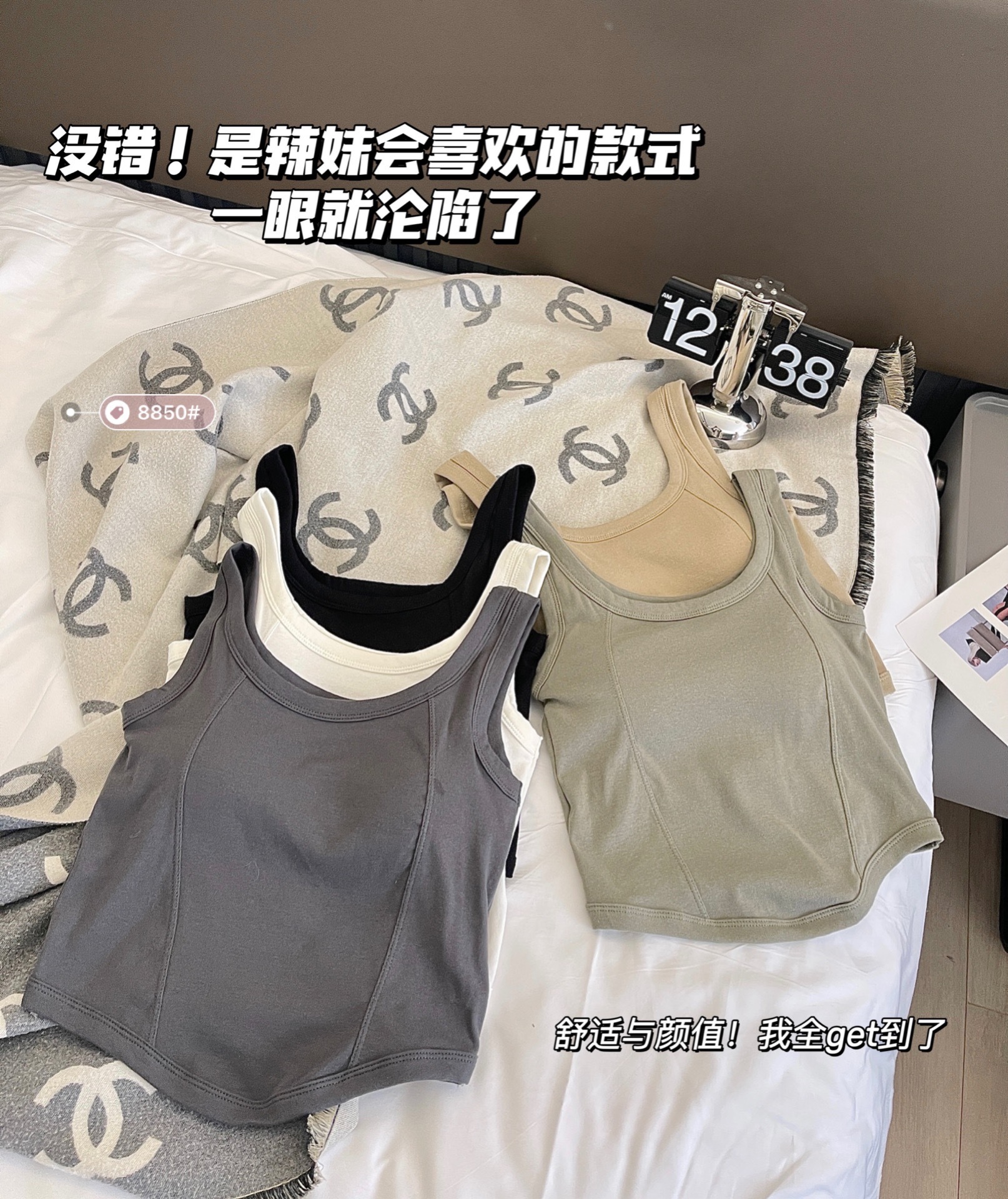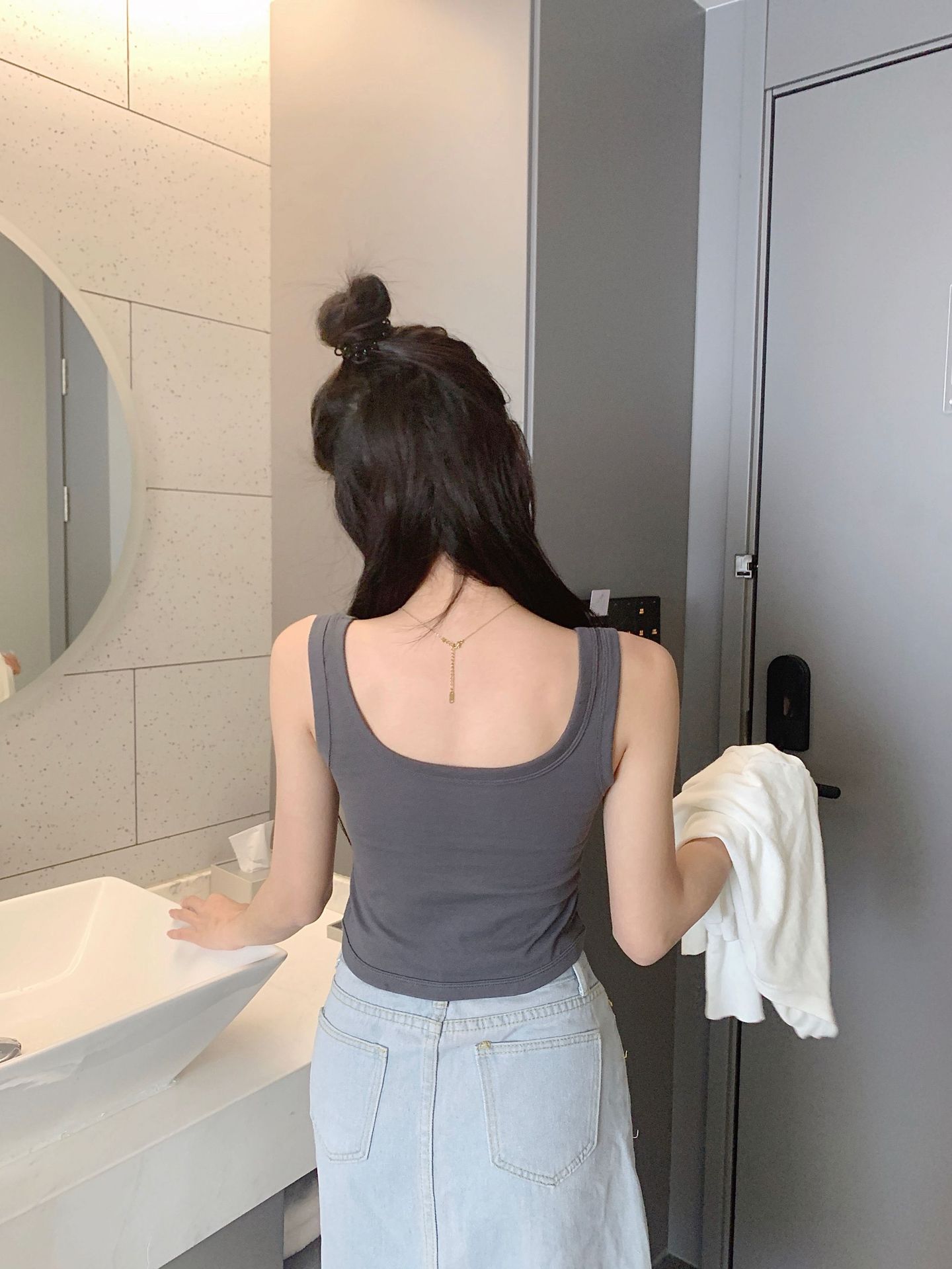 春夏季新款纯棉U领时尚舒适无感少女外穿百搭美背裹胸内衣背心