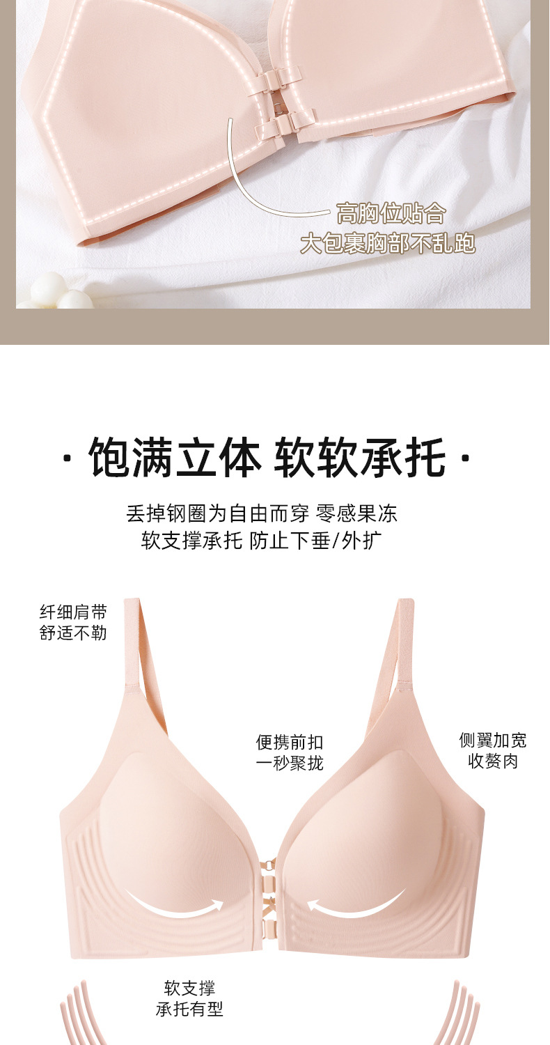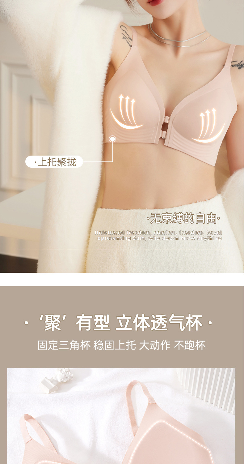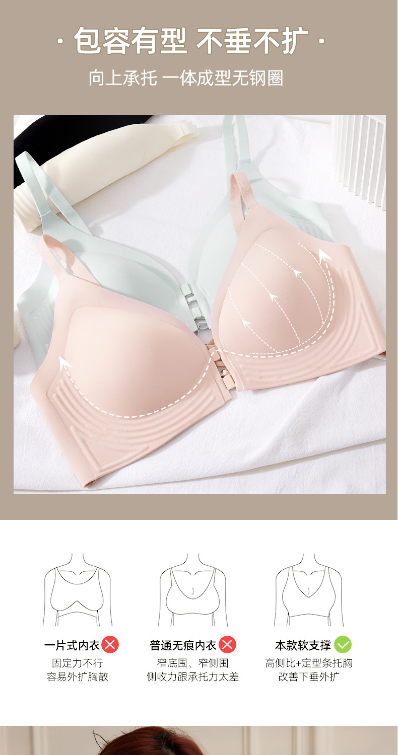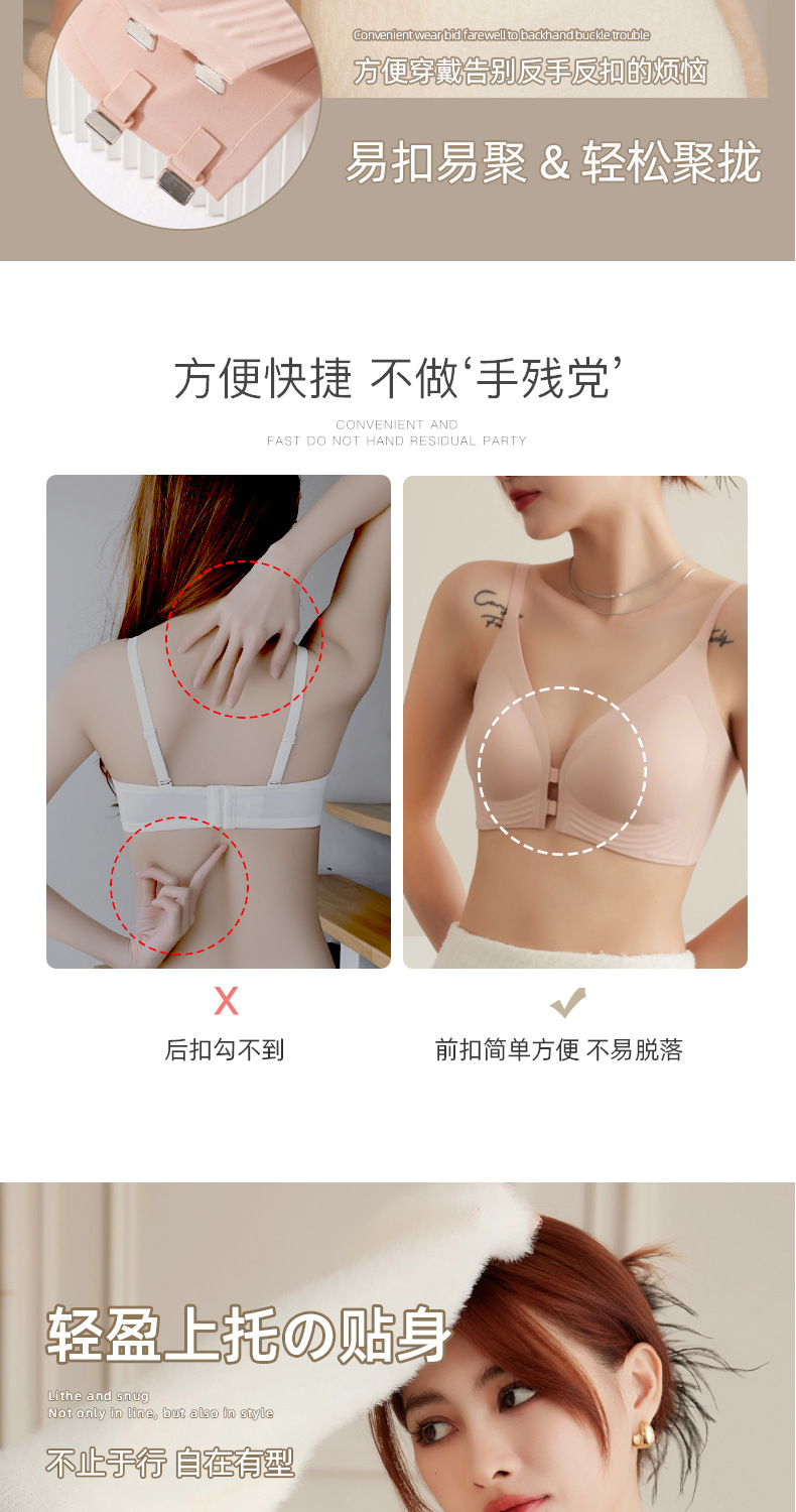 前扣美背内衣女无痕小胸聚拢纯欲无钢圈收副乳大胸显小防下垂文胸