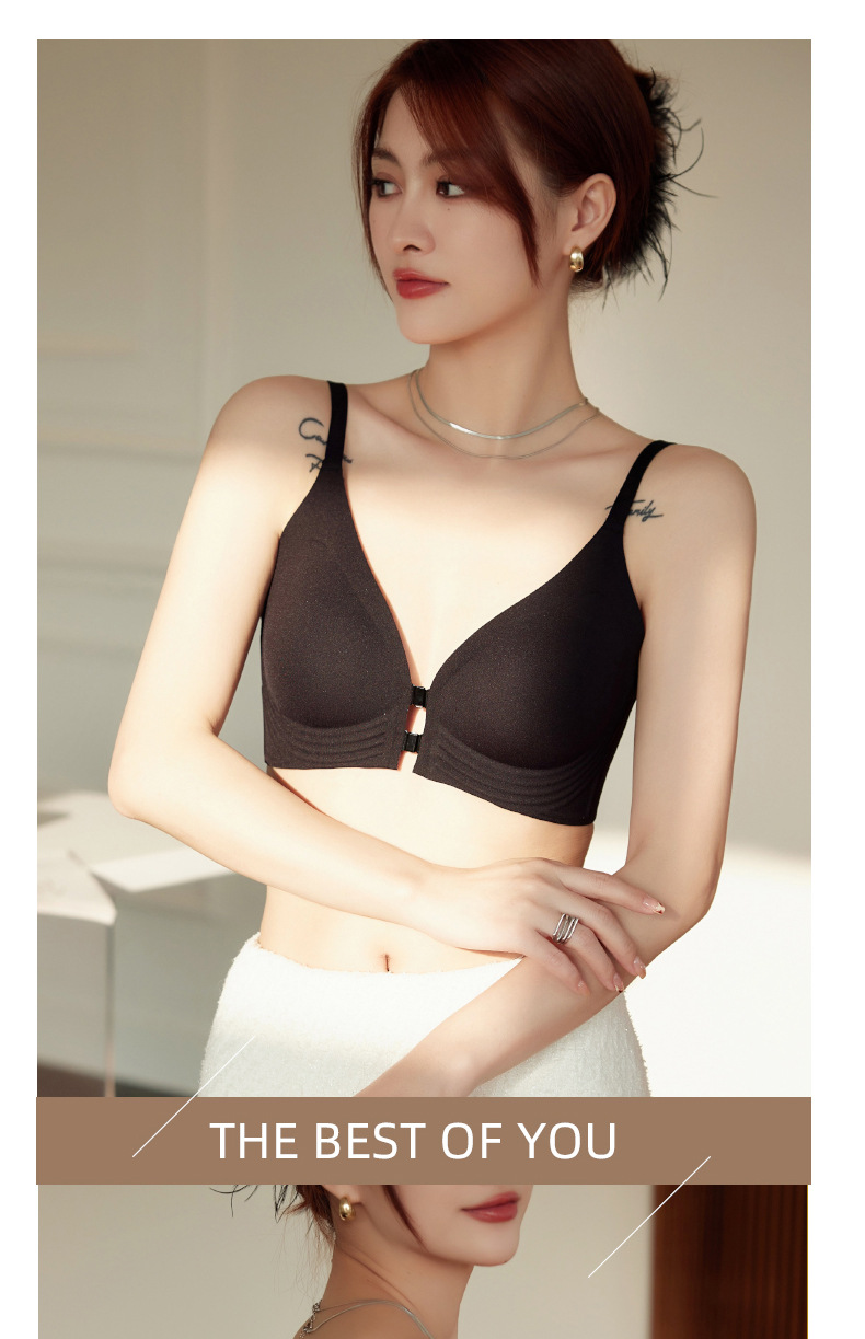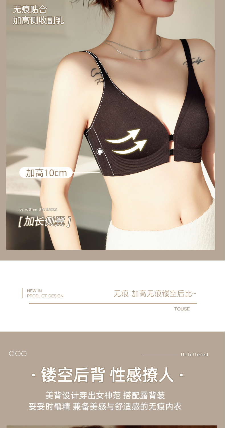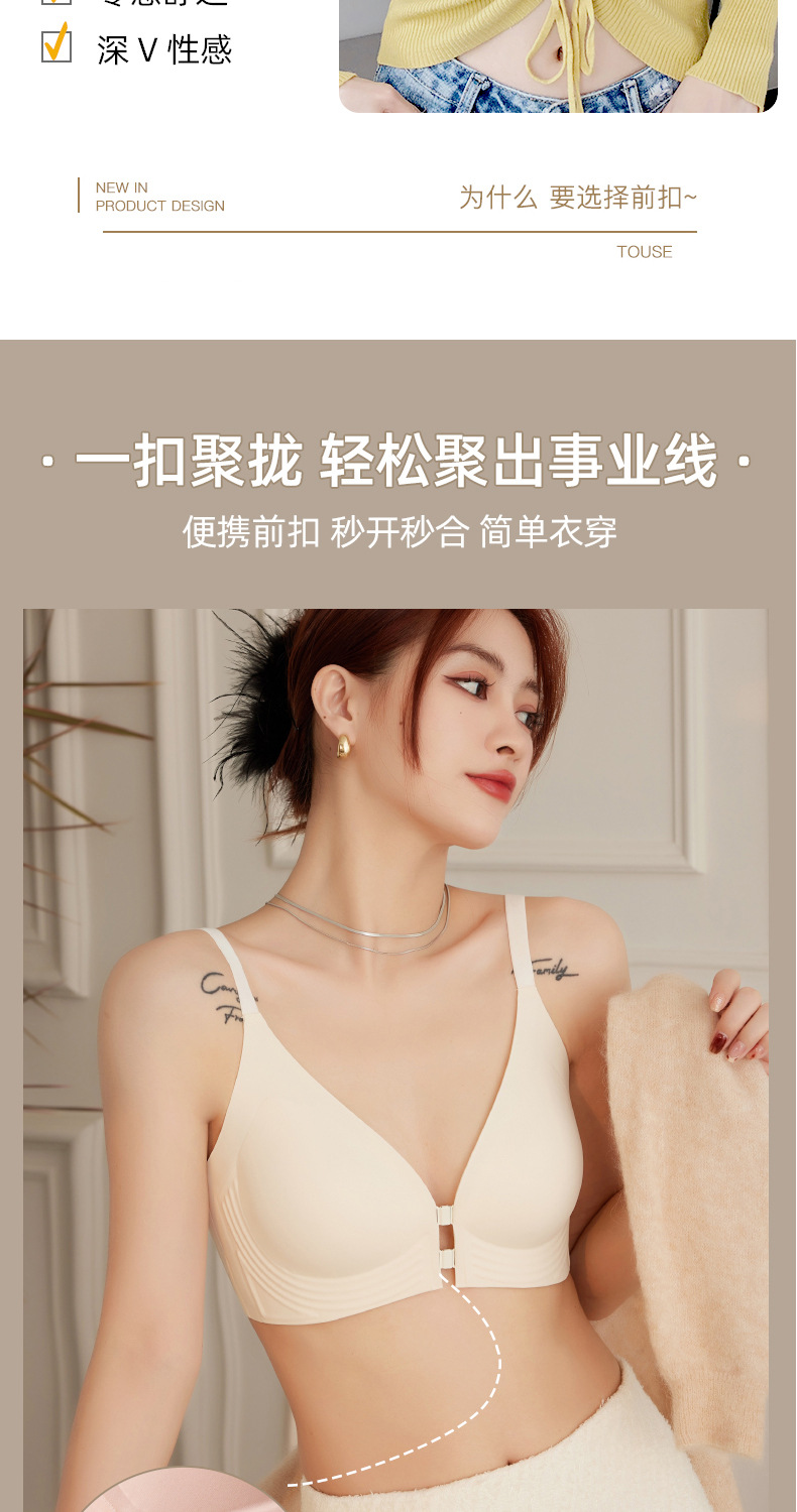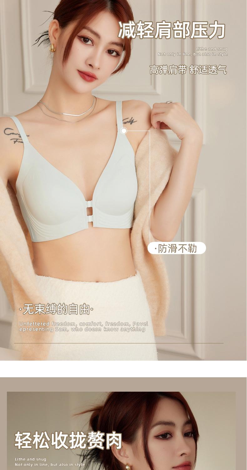 前扣美背内衣女无痕小胸聚拢纯欲无钢圈收副乳大胸显小防下垂文胸