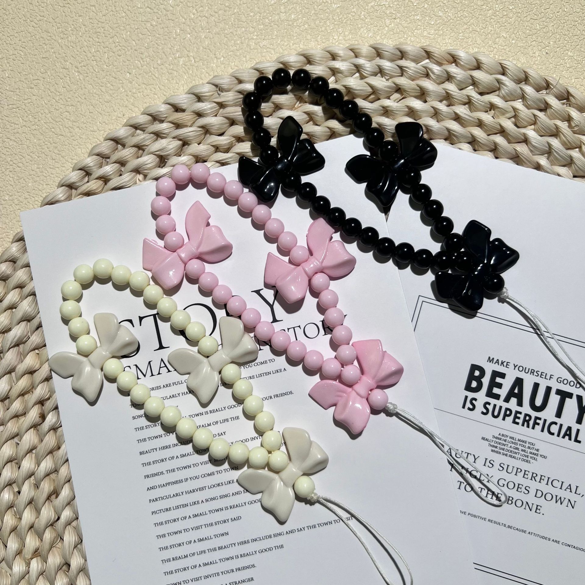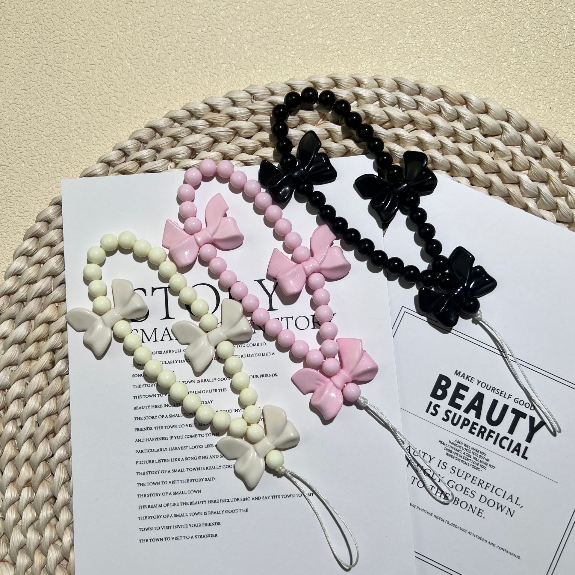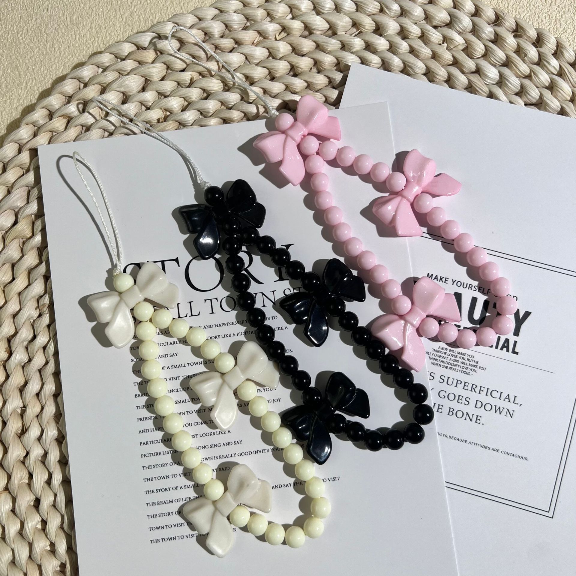 新款少女心蝴蝶结手机挂绳手工串珠手机链短款挂件女配饰时尚款