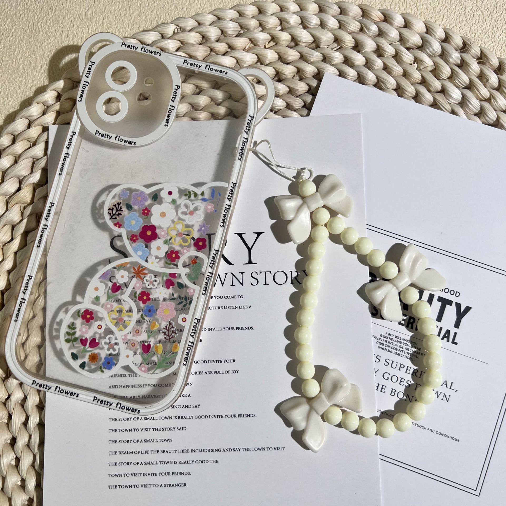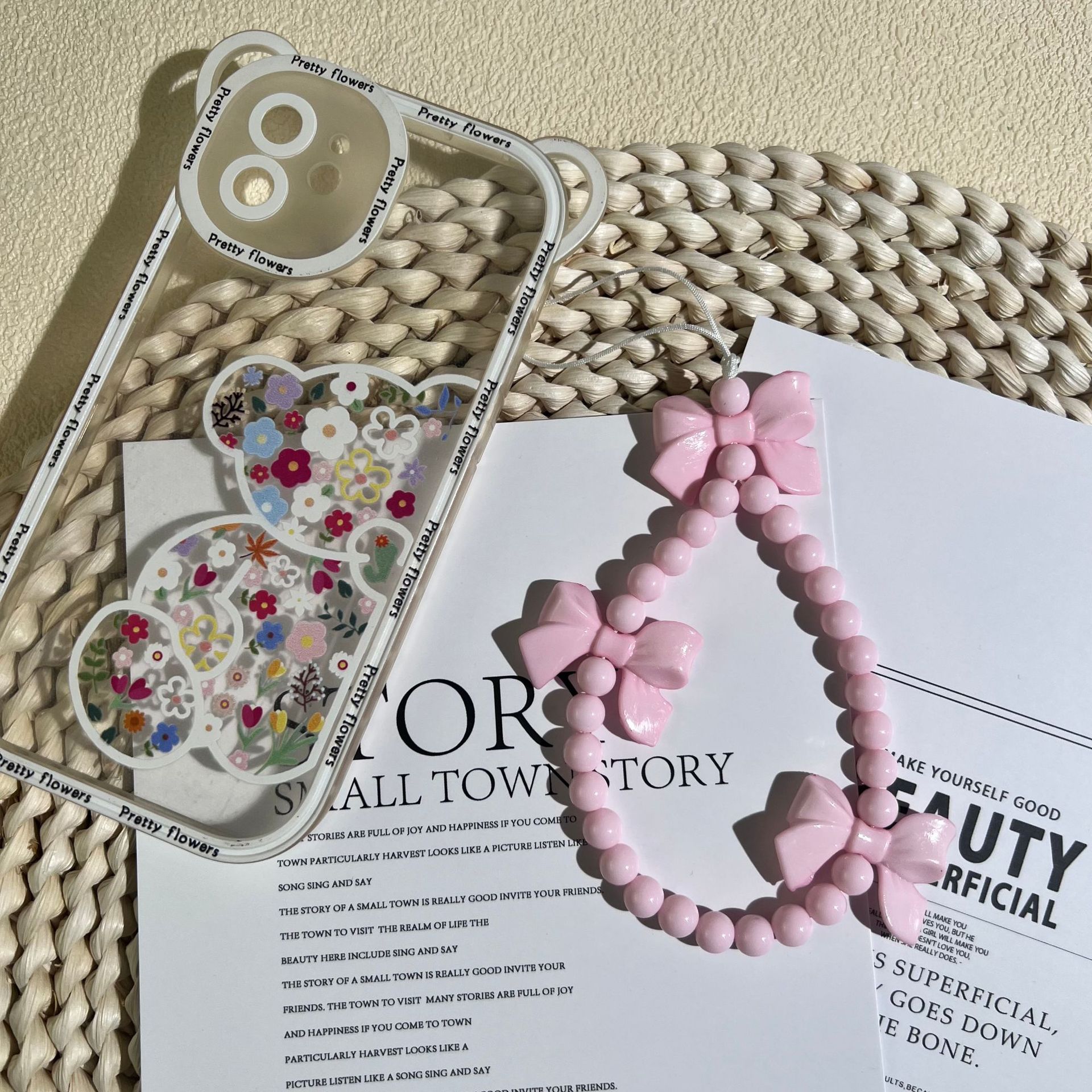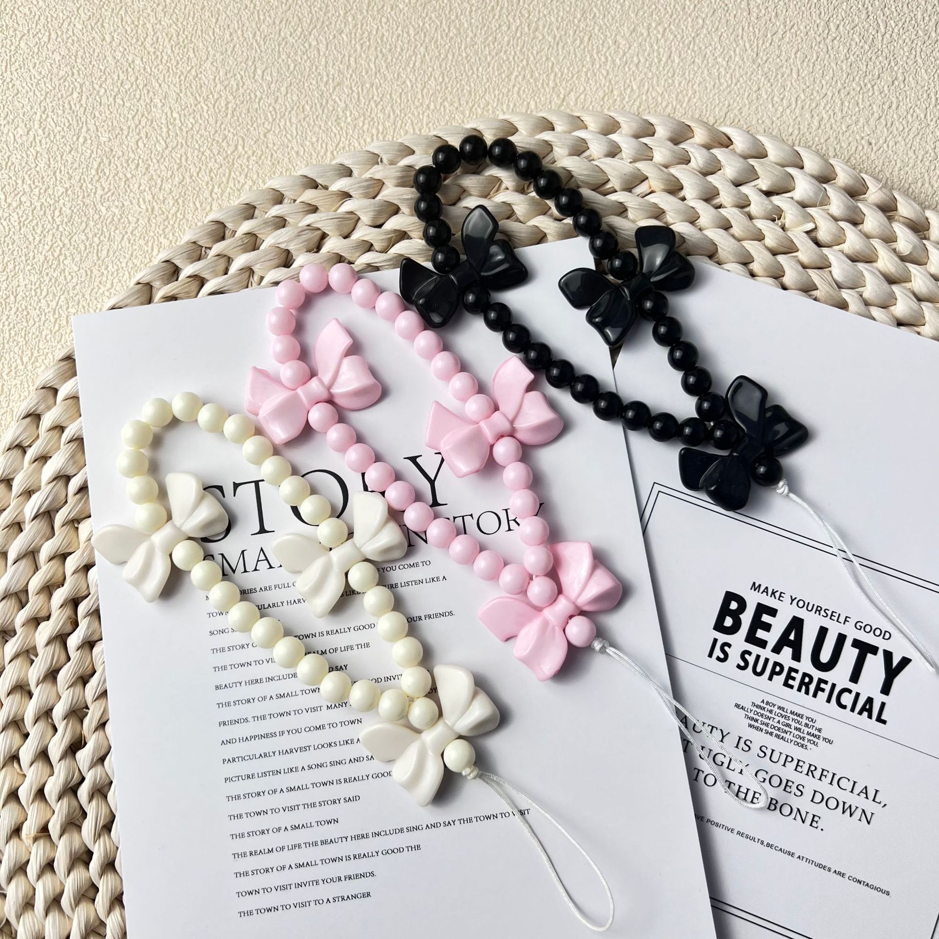 新款少女心蝴蝶结手机挂绳手工串珠手机链短款挂件女配饰时尚款