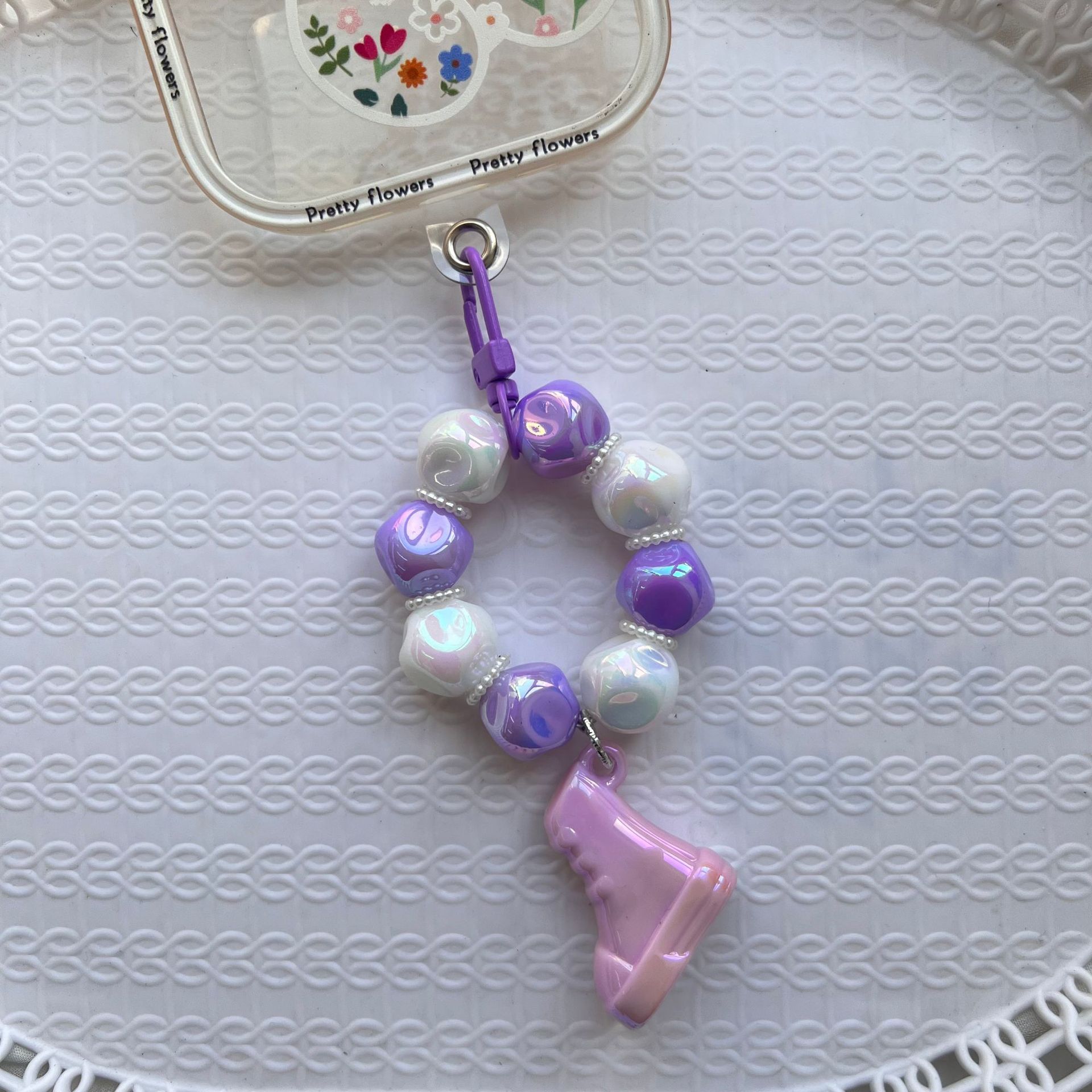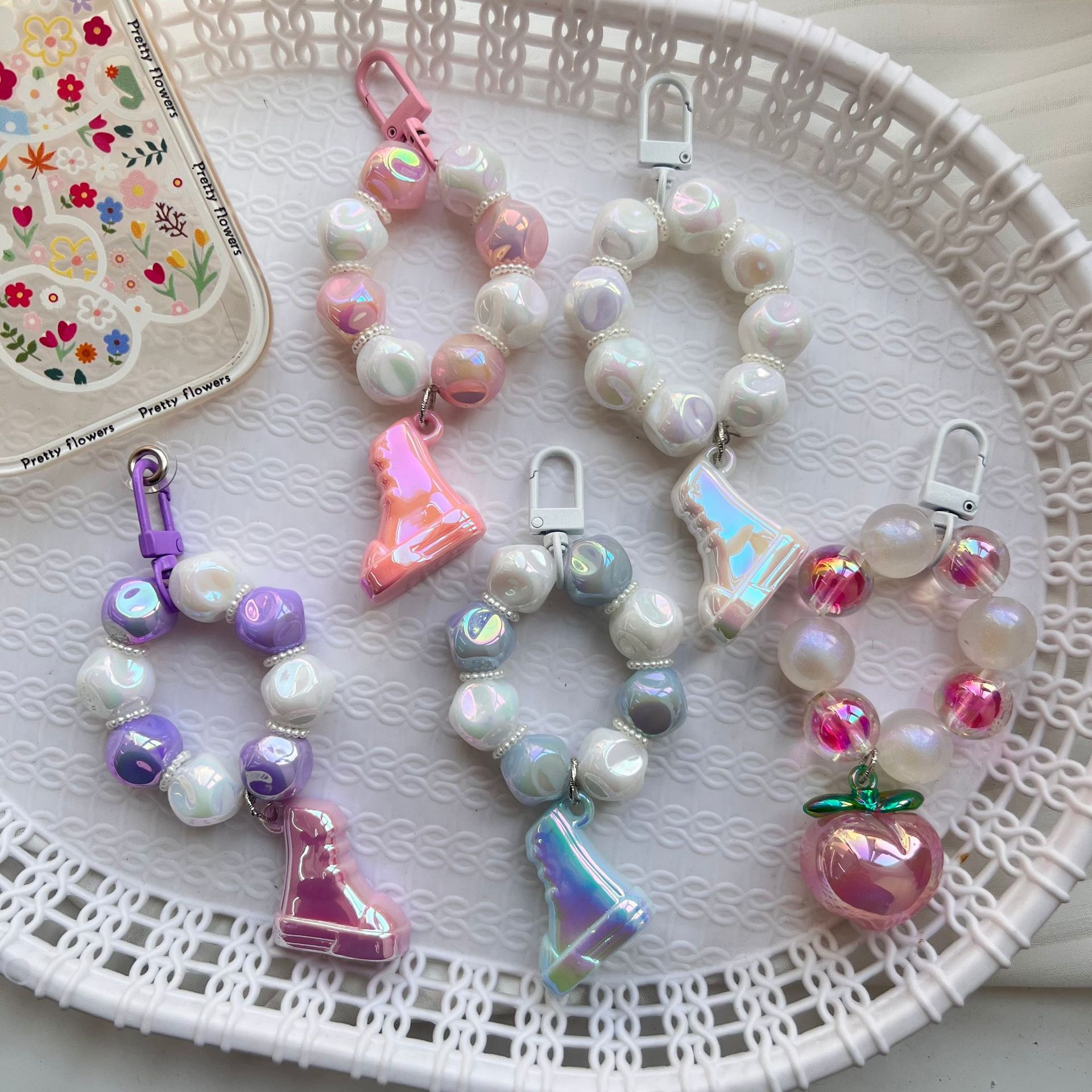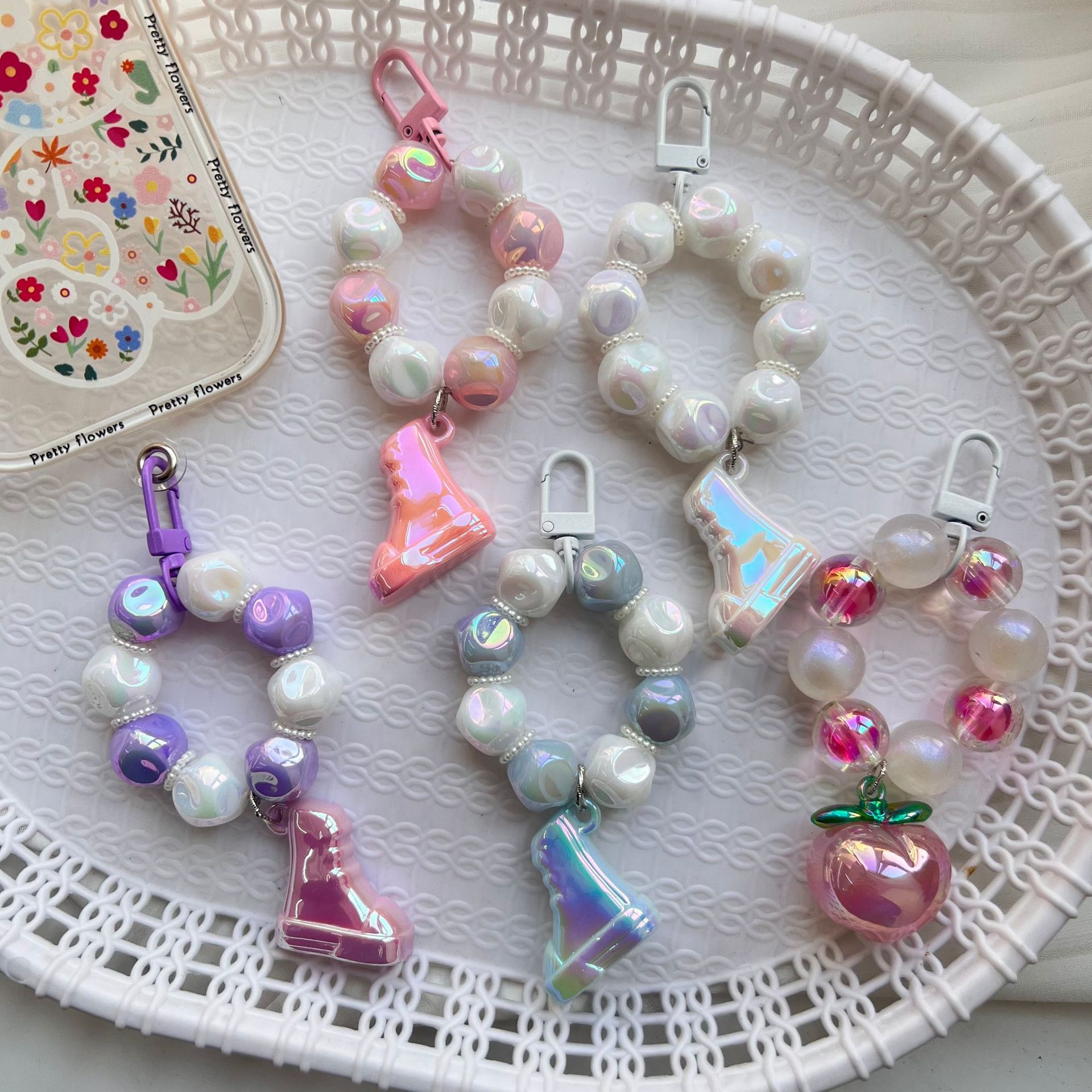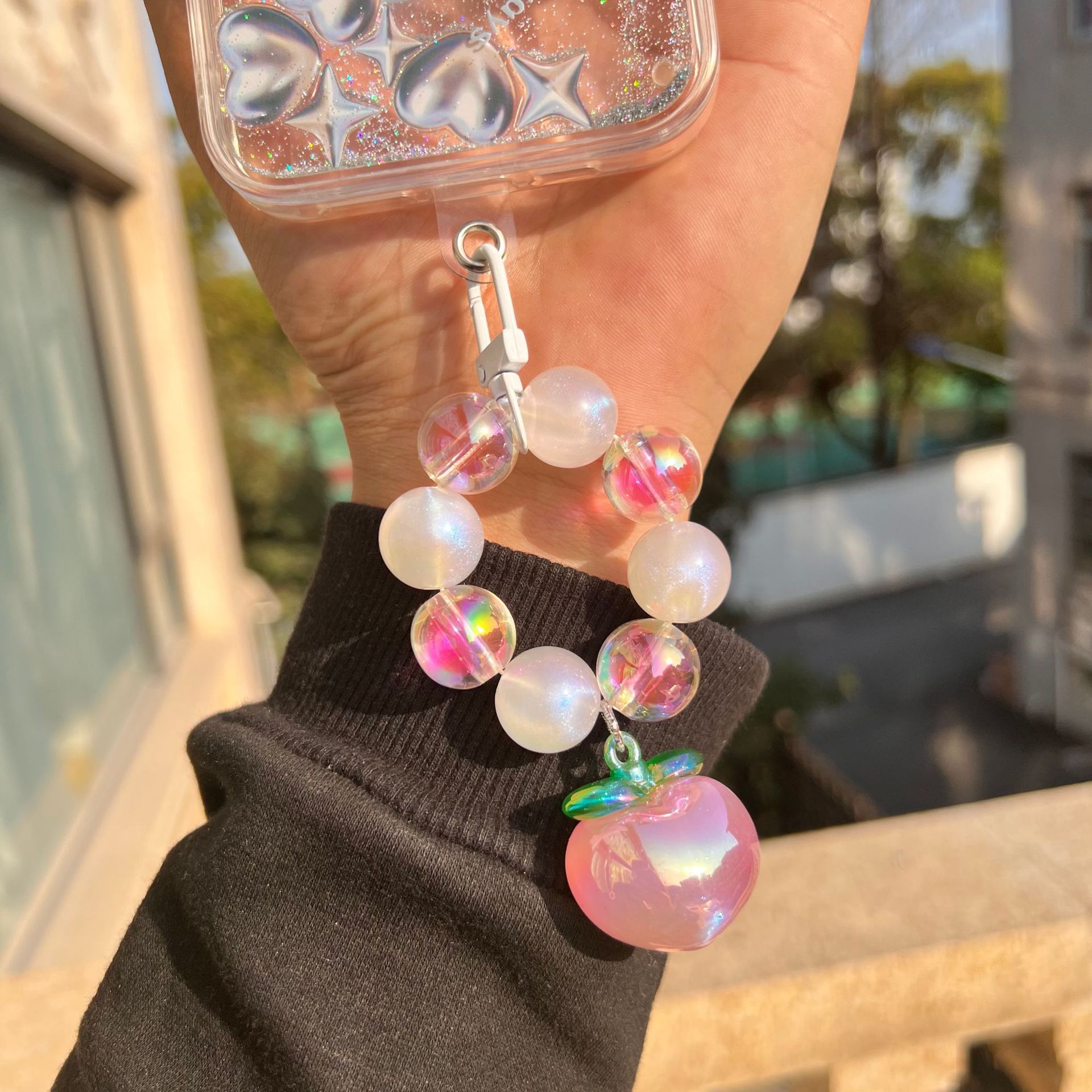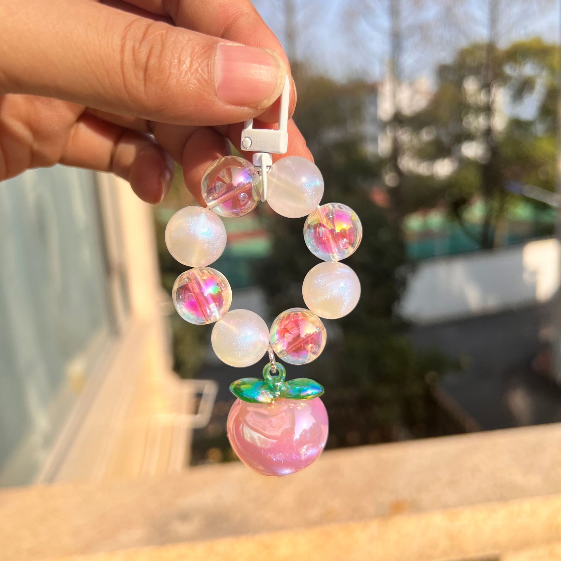 韩版清新透明水蜜桃钥匙扣挂件配件耳机套装饰少女心甜美串珠饰品