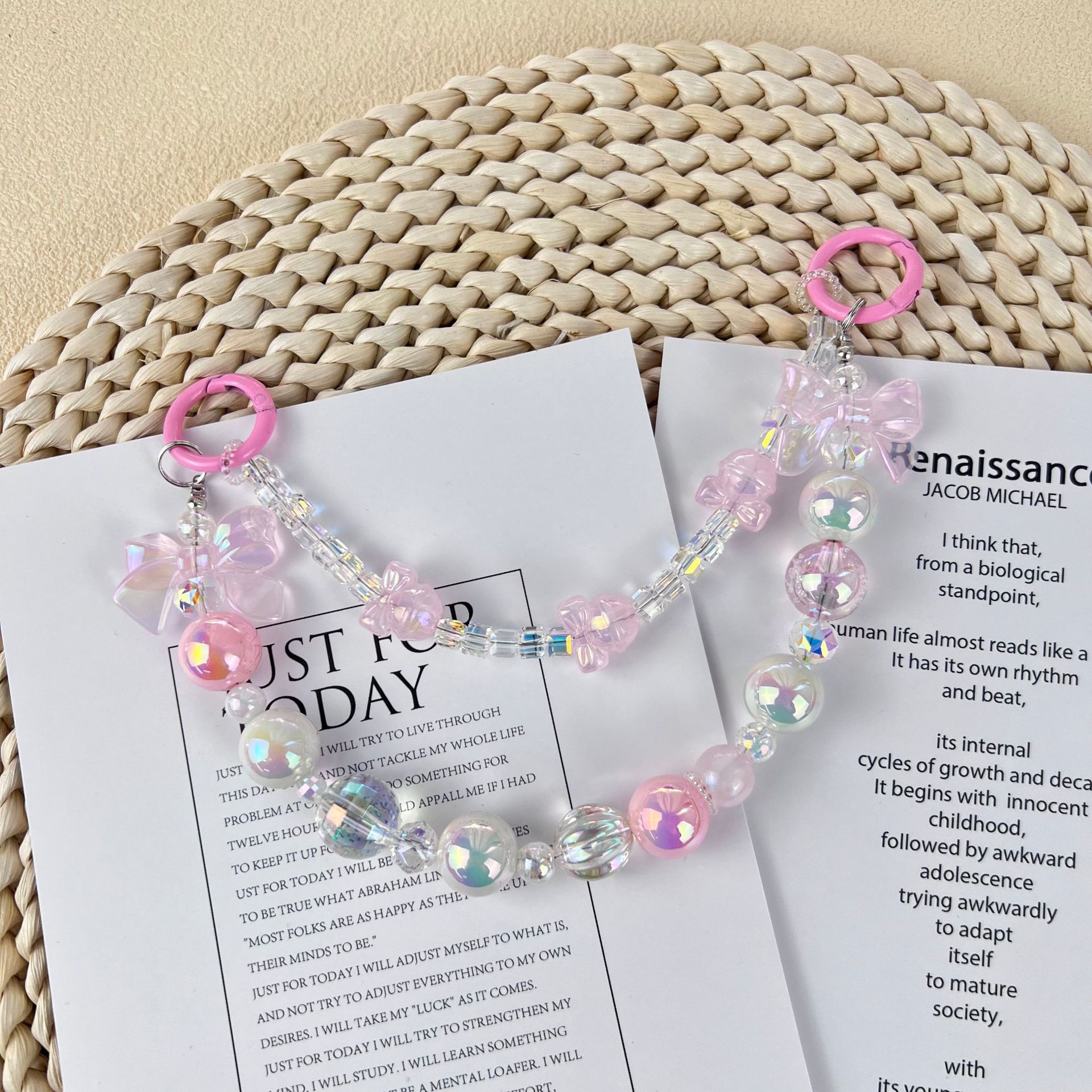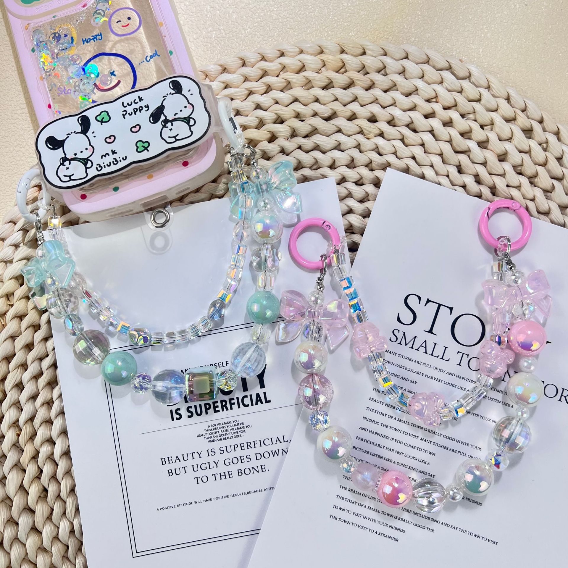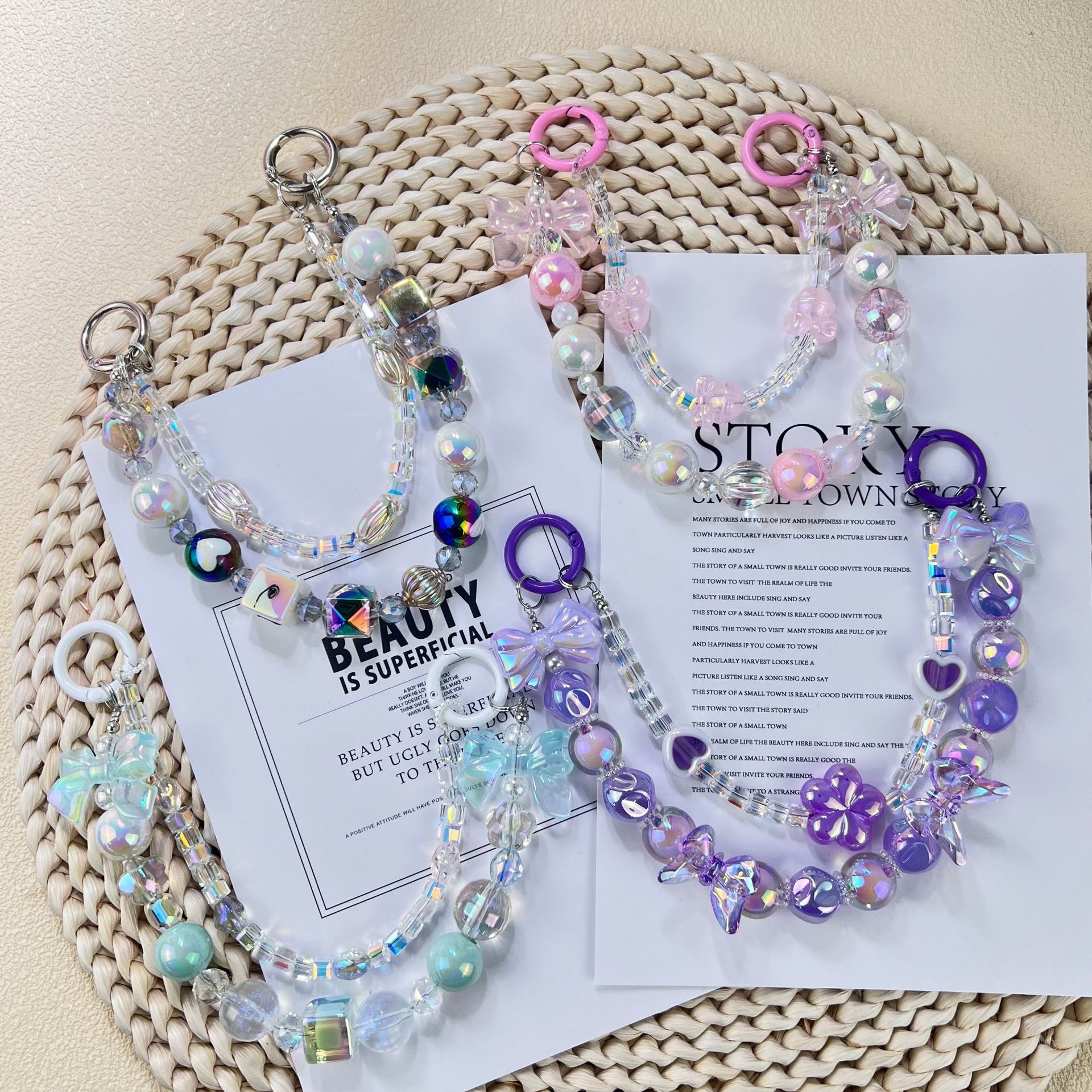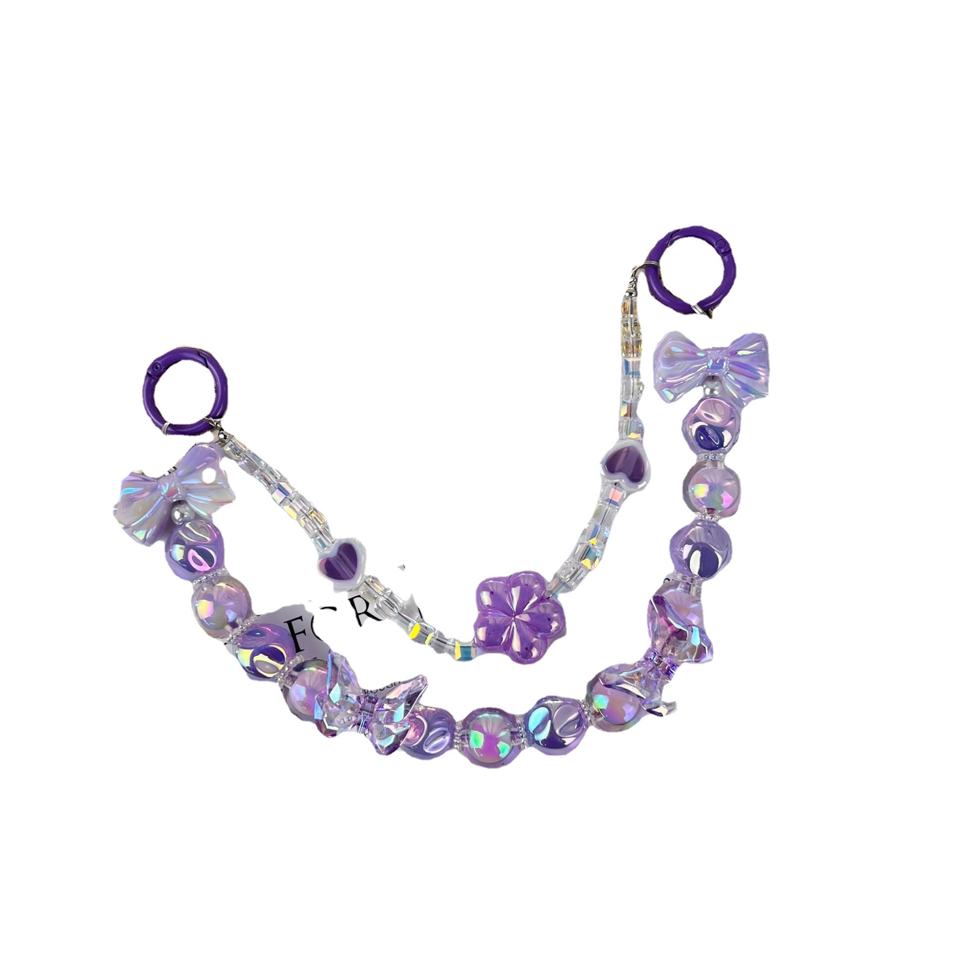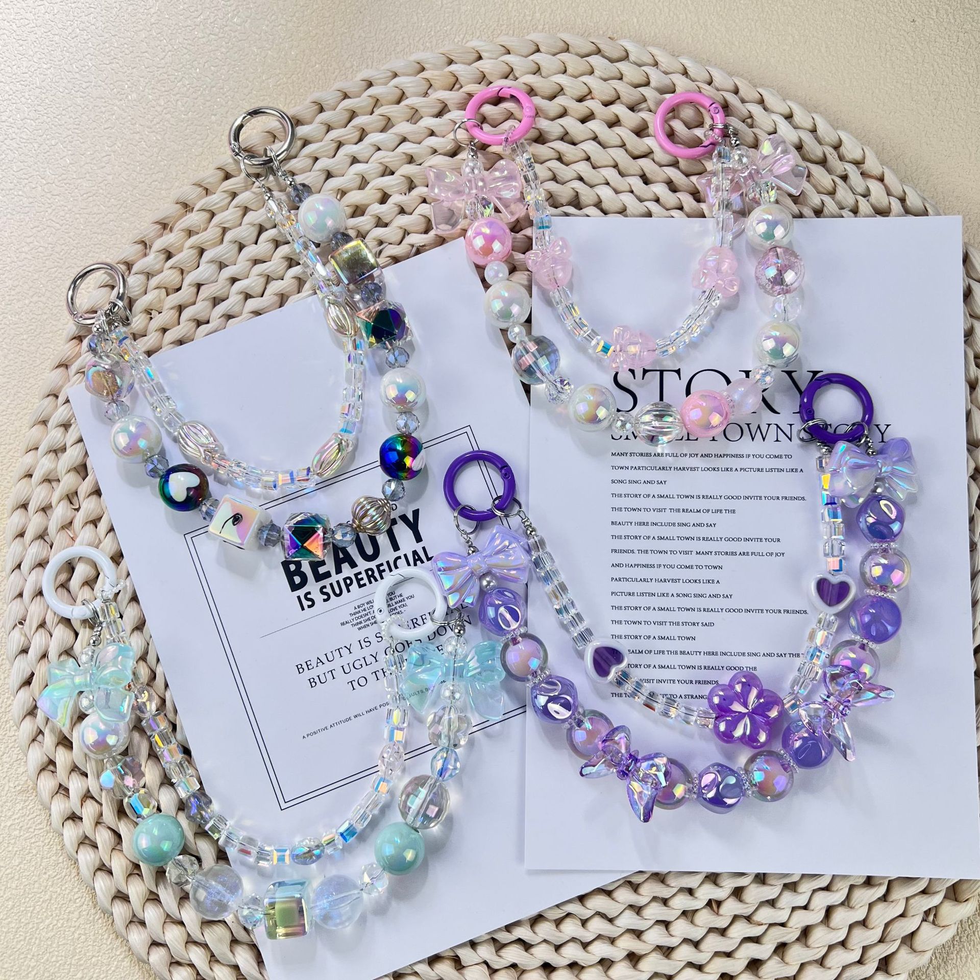 新款小香风蝴蝶结串珠手机链手工DIY彩色珠链挂饰品网红时尚双链