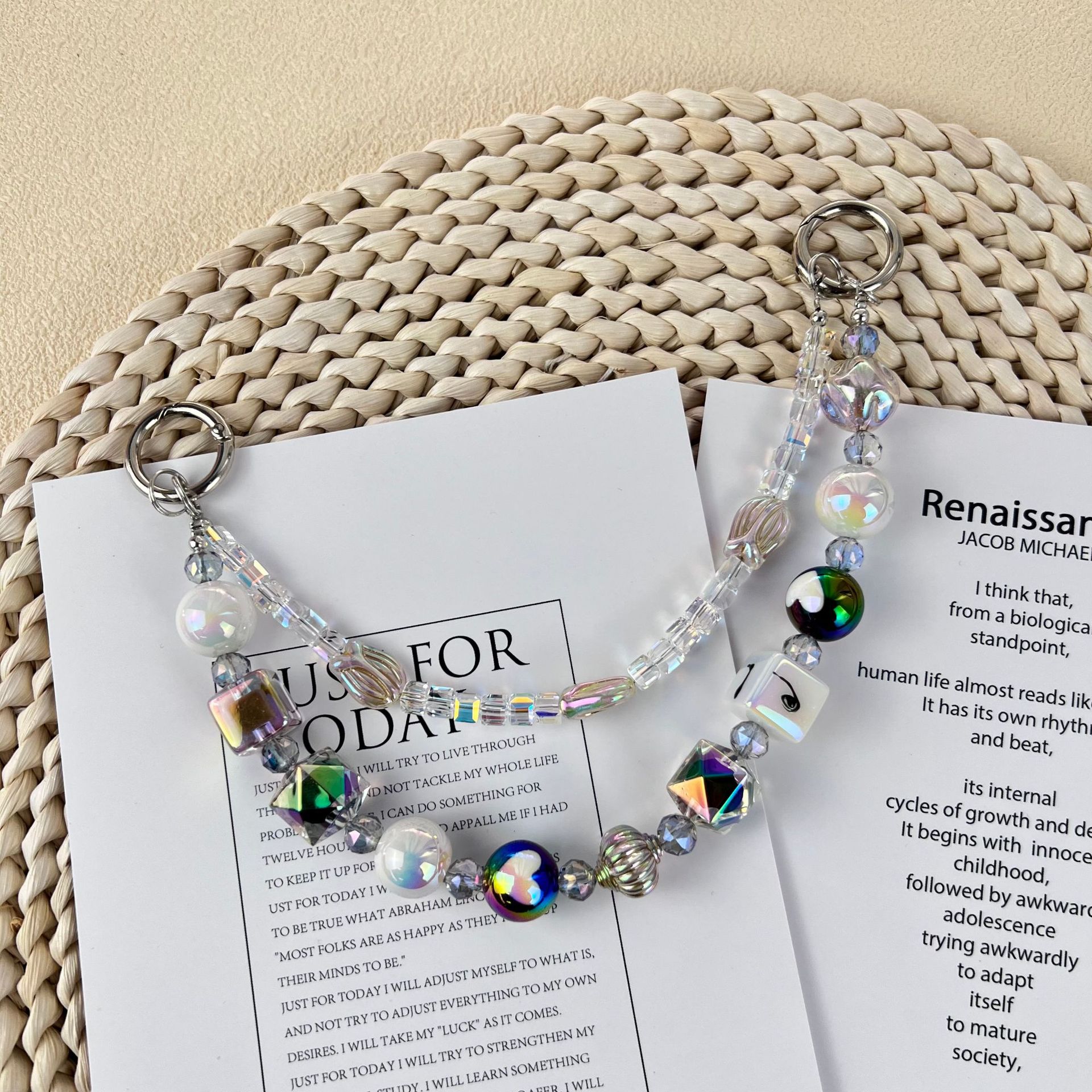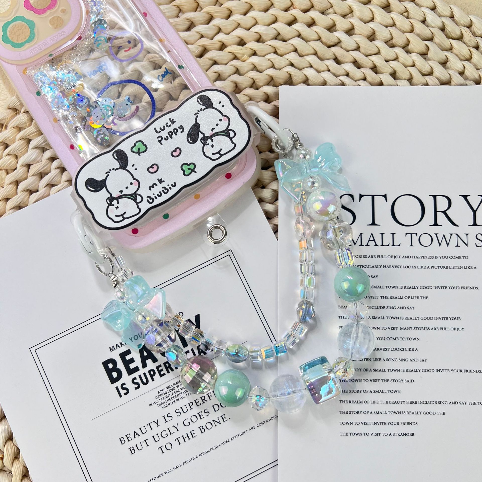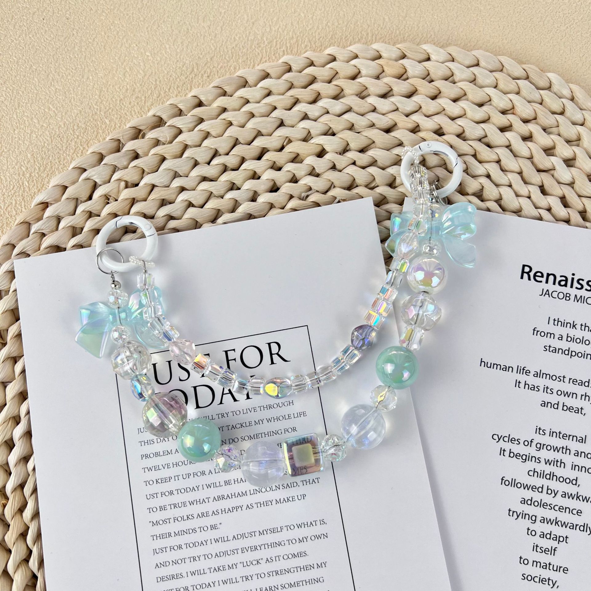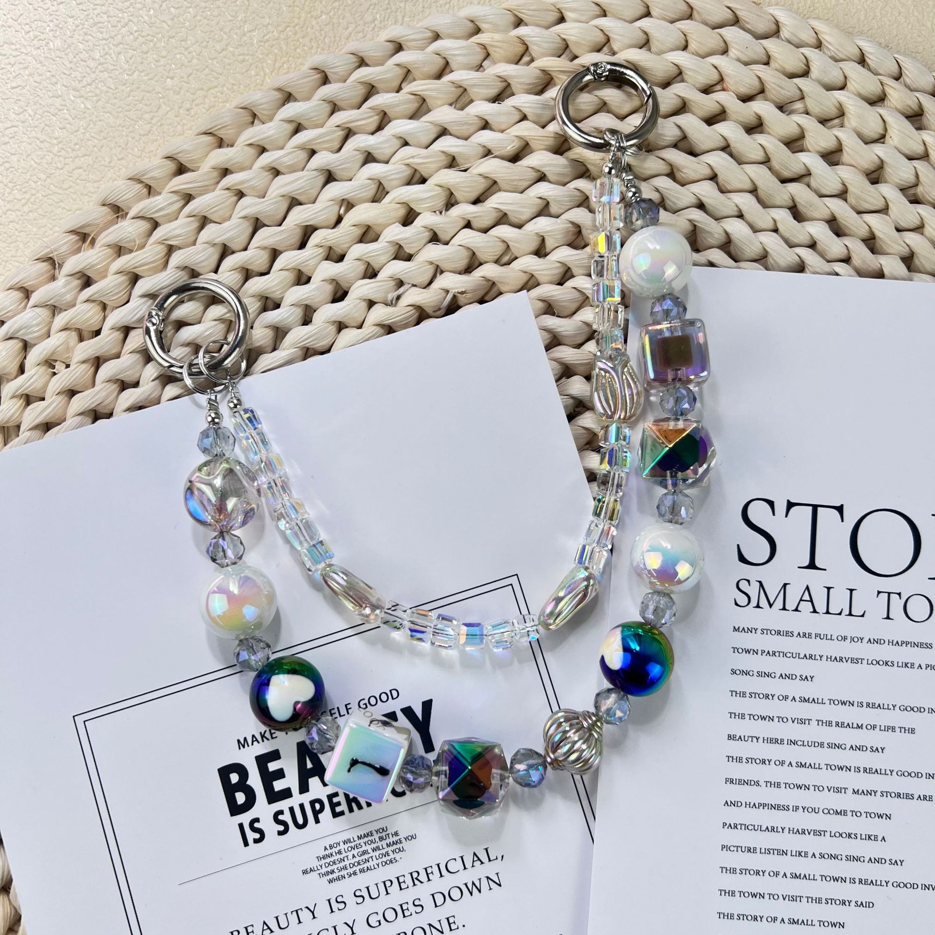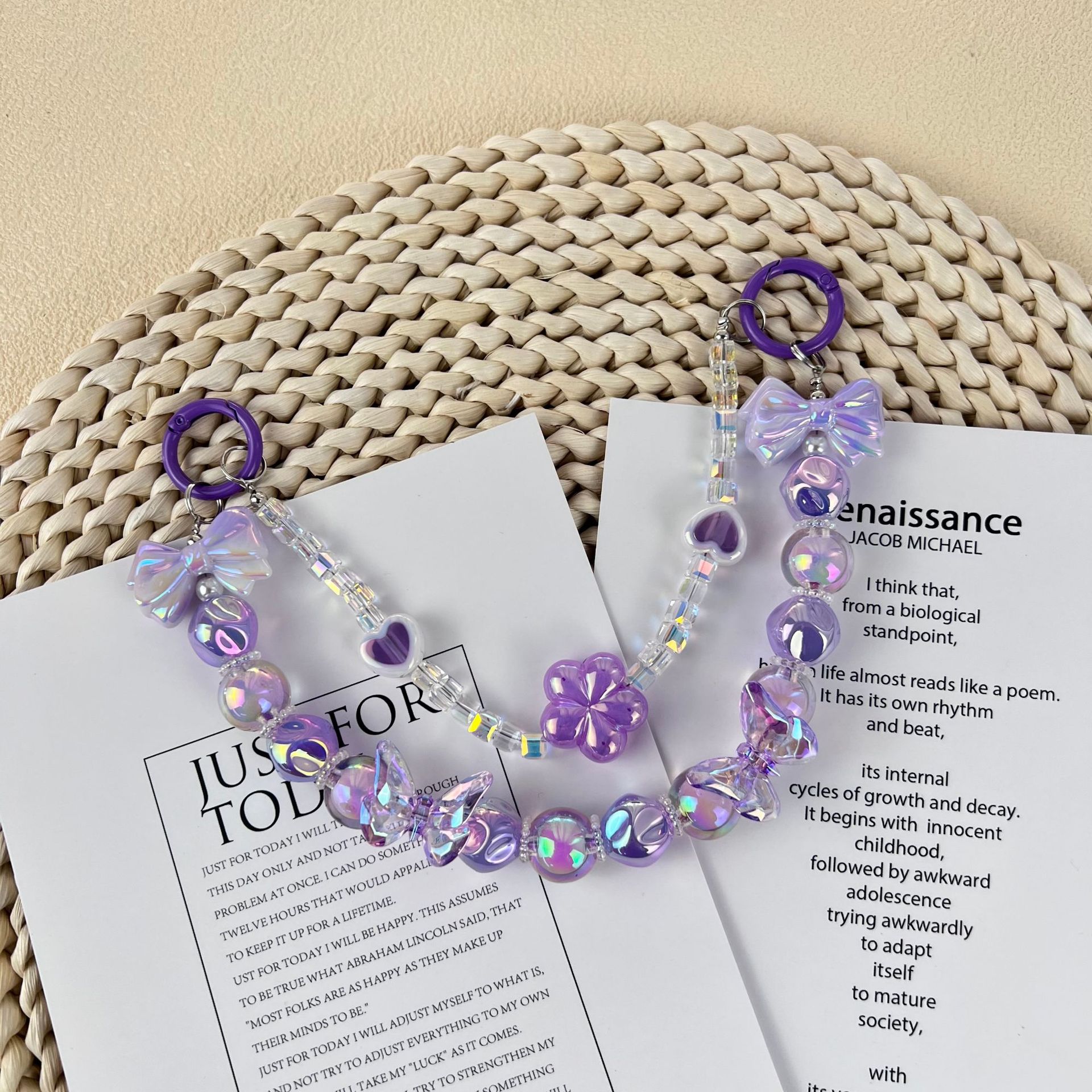 新款小香风蝴蝶结串珠手机链手工DIY彩色珠链挂饰品网红时尚双链