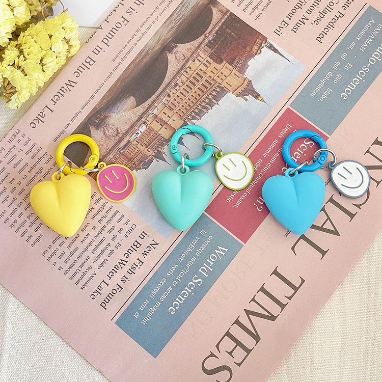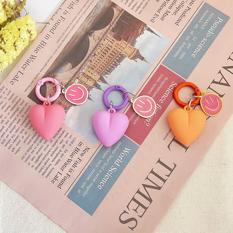 新款桃心汽车钥匙扣挂件可爱卡通笑脸金属环扣钥匙配件包包配饰