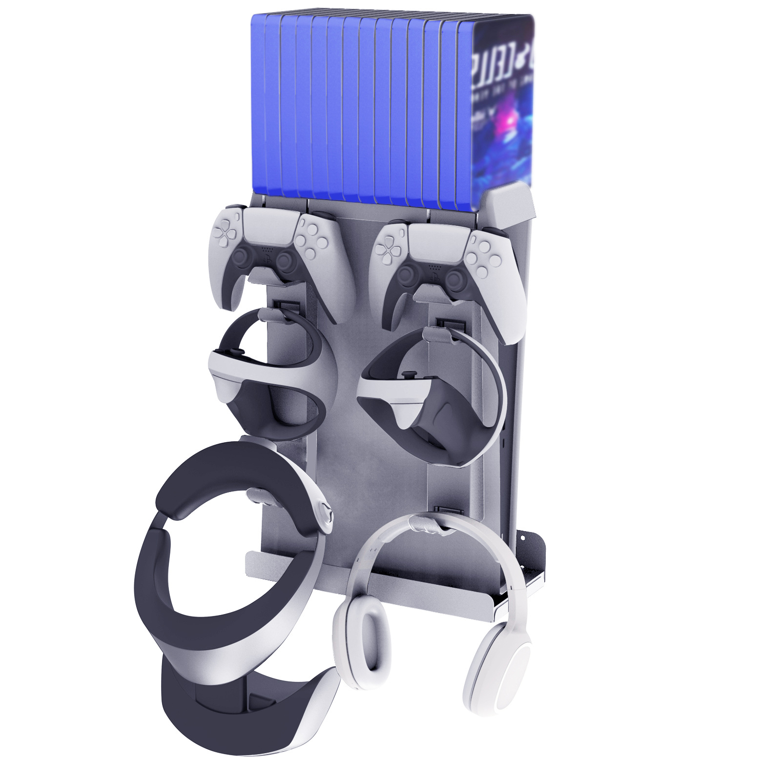 PS VR2挂墙支架 PS5主机挂墙式多功能收纳碟架可收纳主机耳机碟片