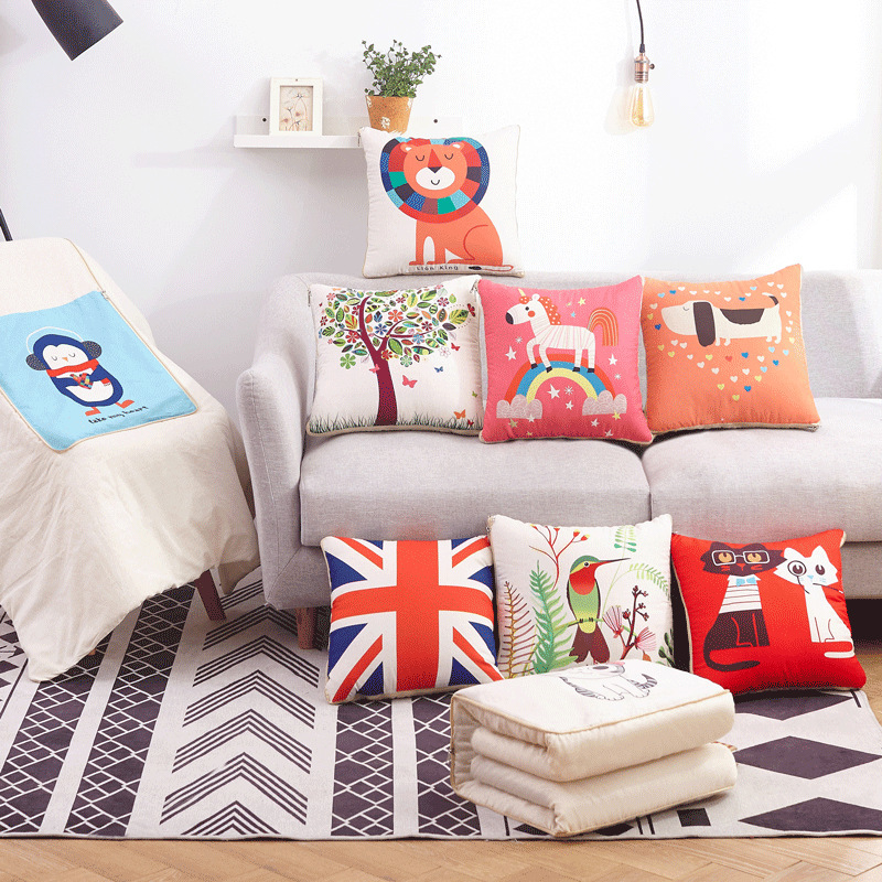 工厂直供两用抱枕被 办公室沙发靠枕被子 卡通多功能抱枕被