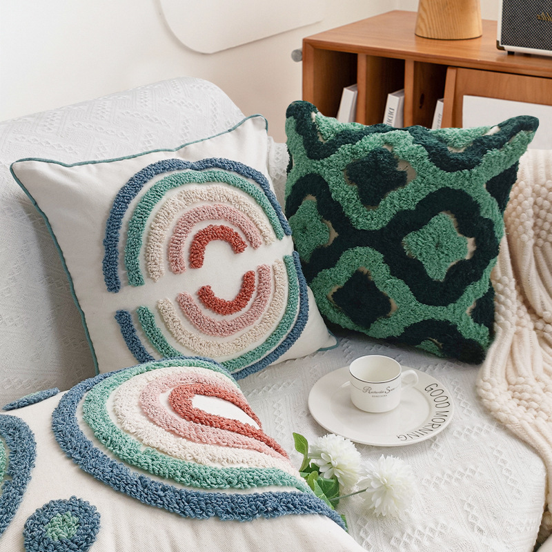 新品ins风几何簇绒抱枕沙发流苏靠垫民宿装饰抱枕亚马逊抱枕套