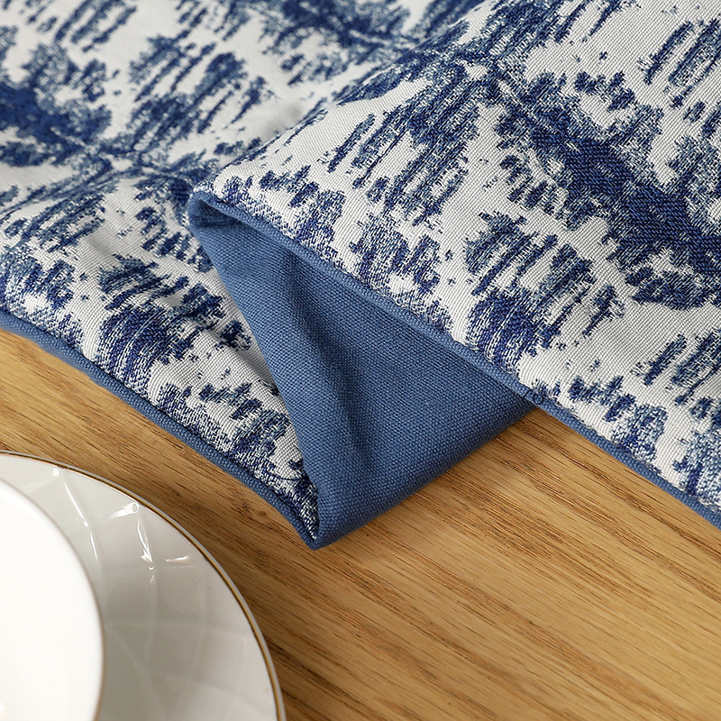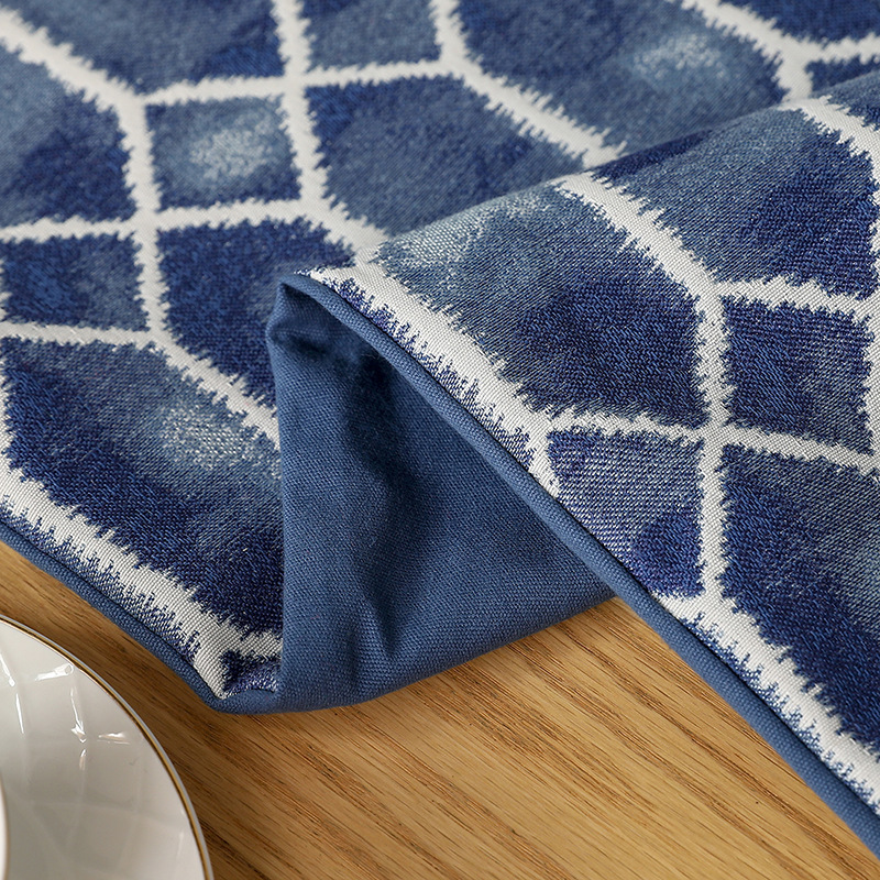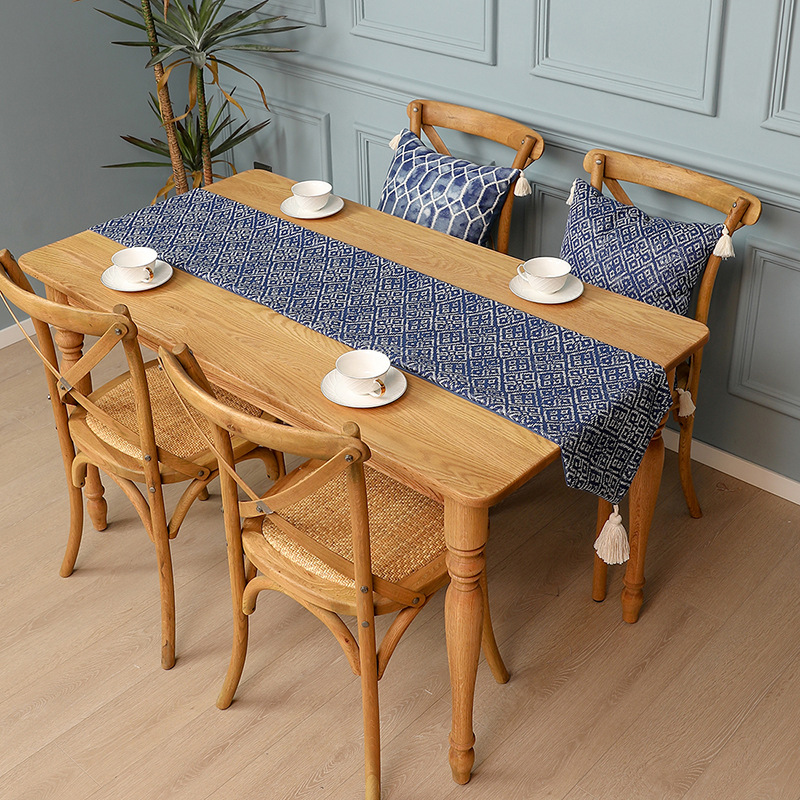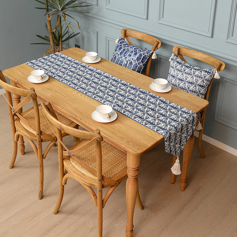 亚马逊跨境新款民族风几何抽象蓝色扎染流苏桌旗酒店居家百搭餐厅