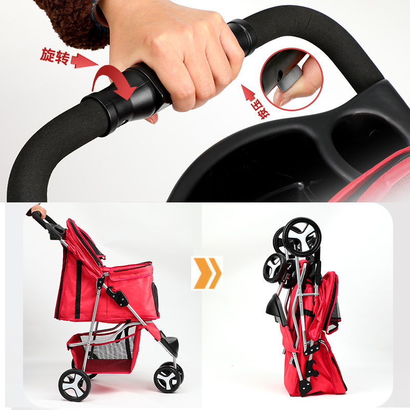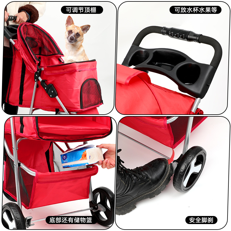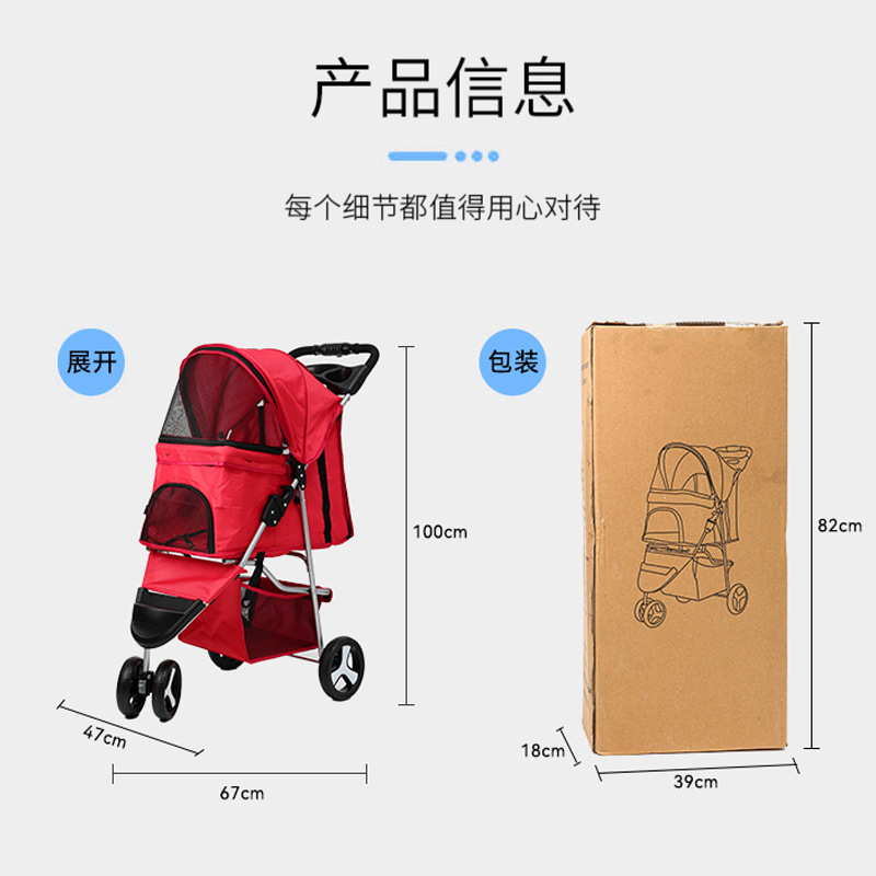 宠物推车三轮可折叠外出遛狗手推车双层可拆卸外贸热卖车载猫包