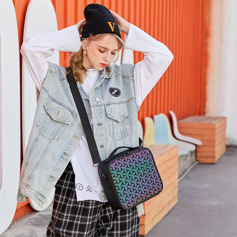 2022包包网红化妆包几何夜光菱格包 单肩斜跨收纳包跨境bag