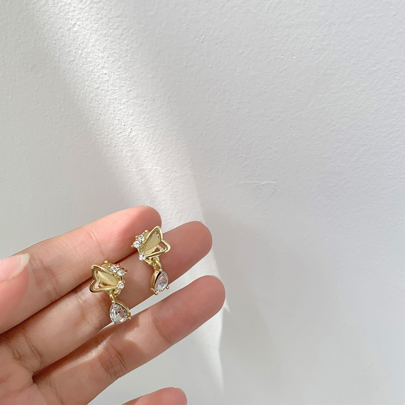 气质简约S925银针耳钉韩国猫眼耳坠金属复古耳环批发小香风耳饰女