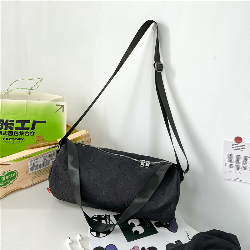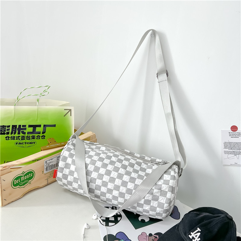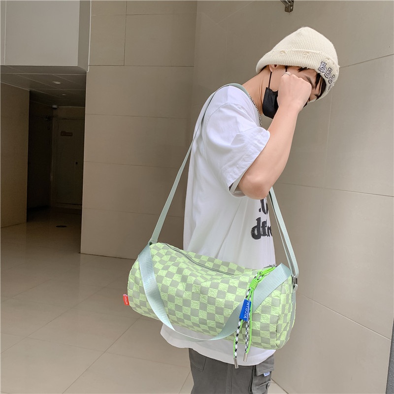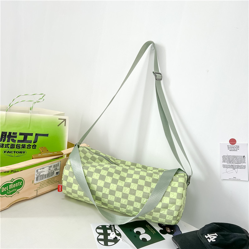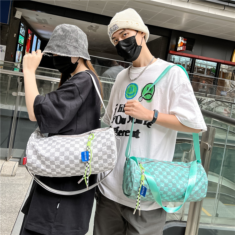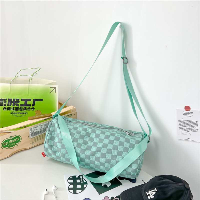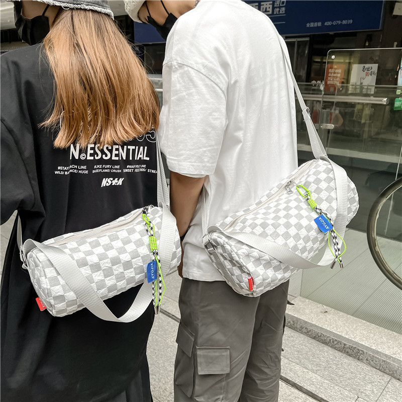 新款瑜伽健身包流行棋盘格时尚圆筒训练运动单肩包户外旅行斜挎包