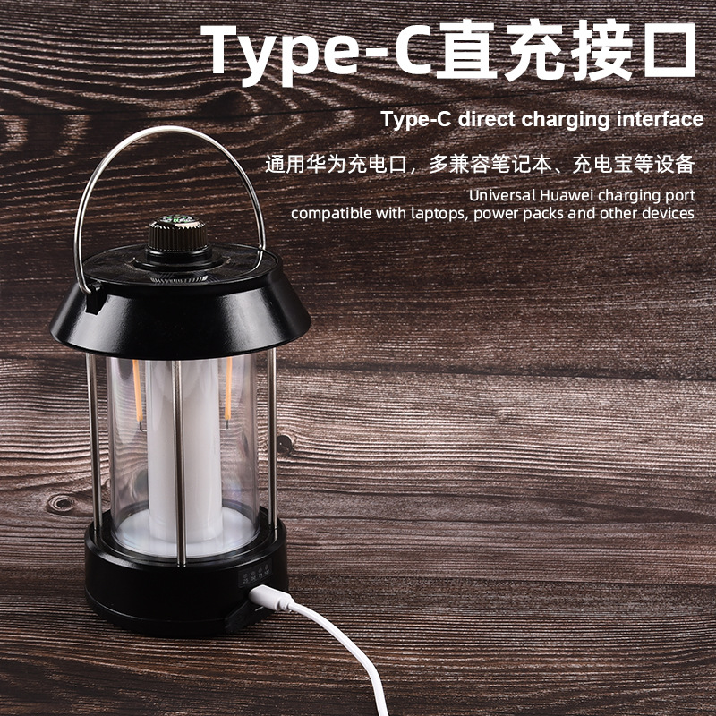 跨境新款户外露营灯Type-c接口太阳能充电多功能应急灯LED野营灯