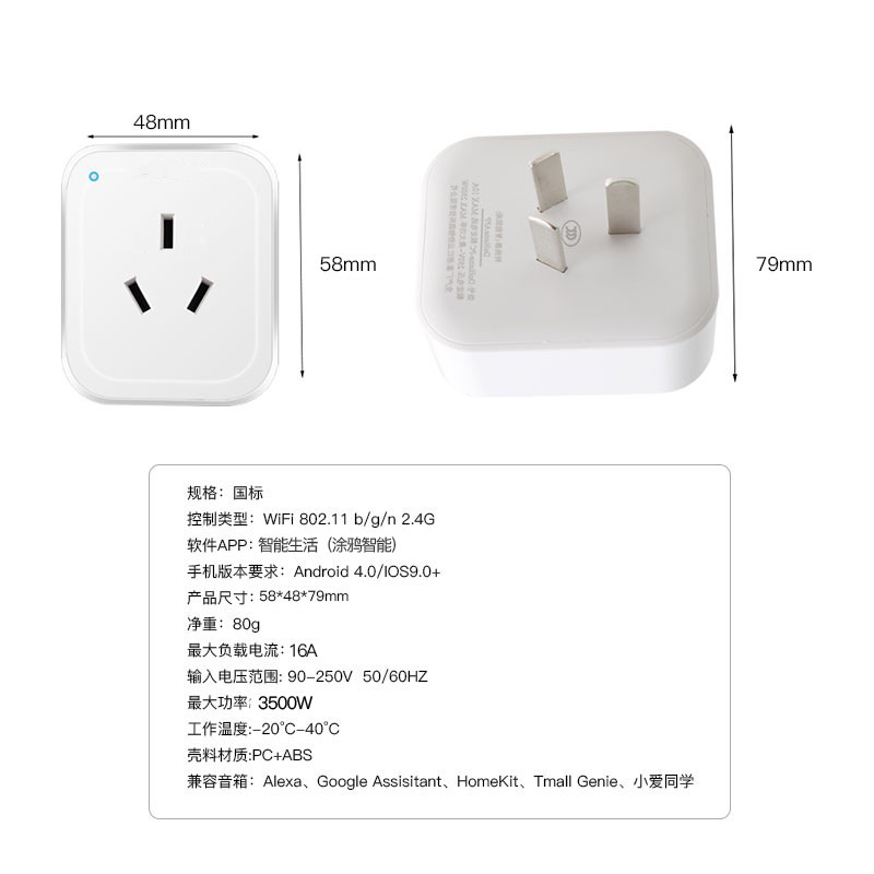涂鸦WiFI智能插座支持天猫精灵小爱同学远程定时wifi插座HomeKit