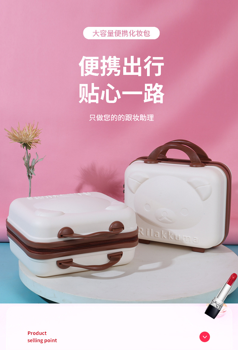 14寸小熊化妆箱带密码锁便携手提化妆品收纳箱旅行箱耐磨抗压便携