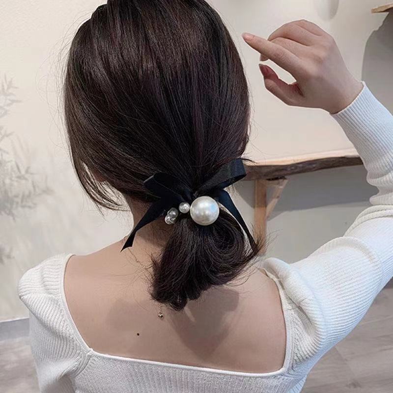 法式气质珍珠发圈 ins复古小香风韩系头绳 蝴蝶结大珍珠皮筋批发