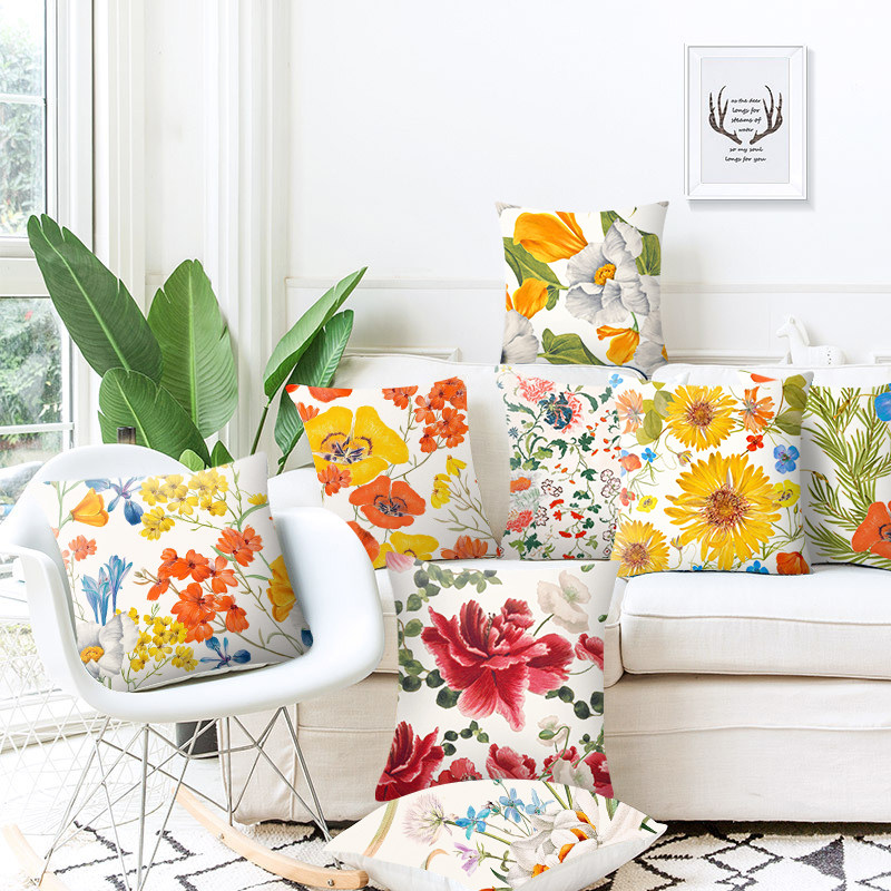 北欧田园风植物花卉抱枕新款清新汽车护腰靠背靠枕飘窗睡觉方型