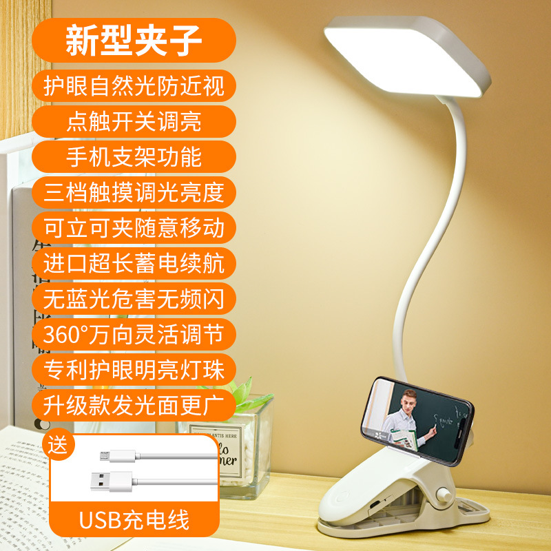 夹式LED台灯护眼学习儿童保护视力可充电插电学生宿舍阅读床头灯