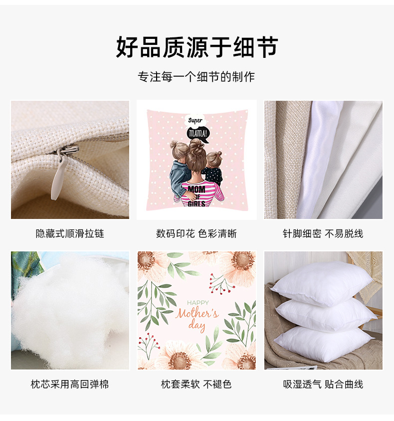 母亲节抱枕妈妈生日家居抱枕 数码印花diy爱心舒适午睡定 制抱枕