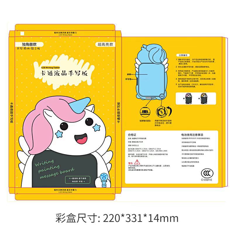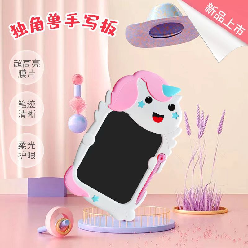 卡通独角兽儿童绘画手写板led液晶多功能草稿无尘无灰粉电子画板
