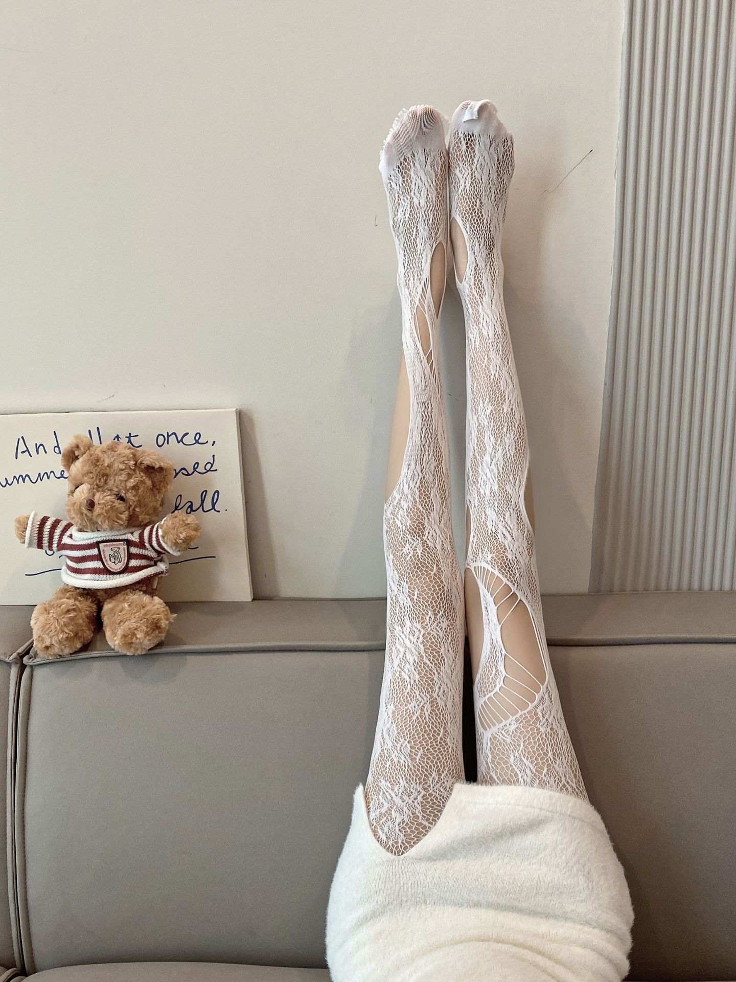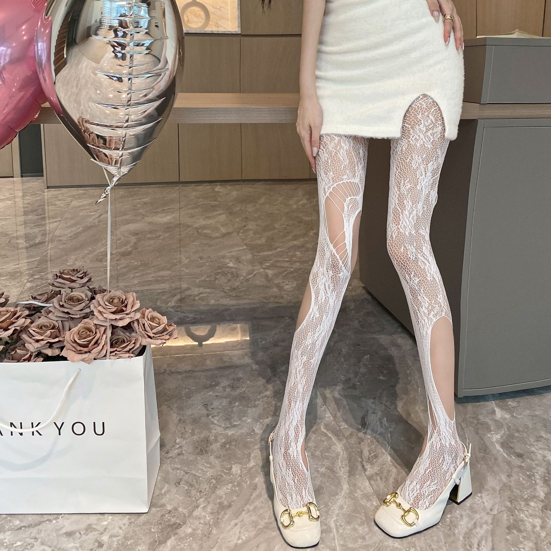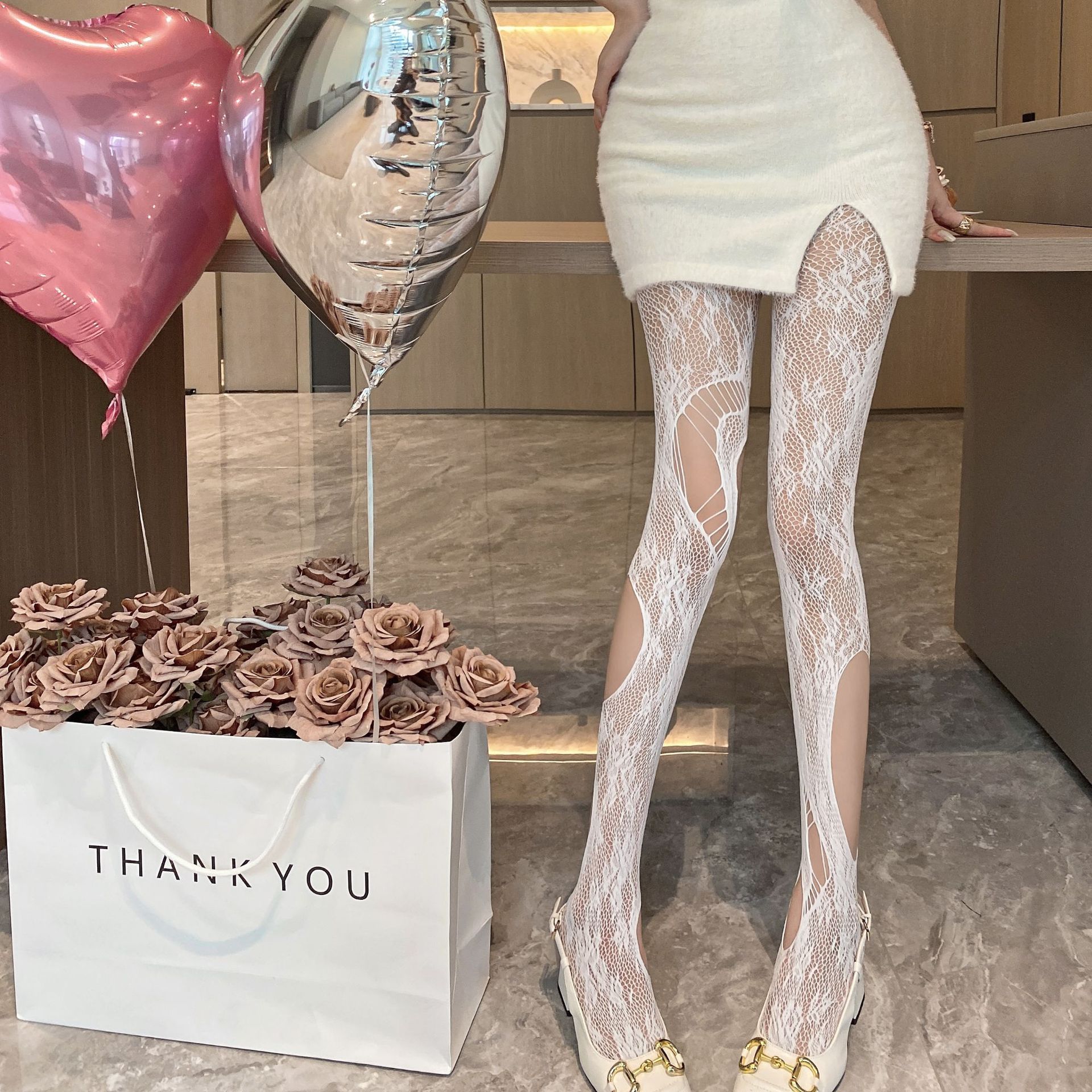 撕裂破洞连裤袜镂空渔网玫瑰花千禧辣妹ins潮个性不对称设计黑丝