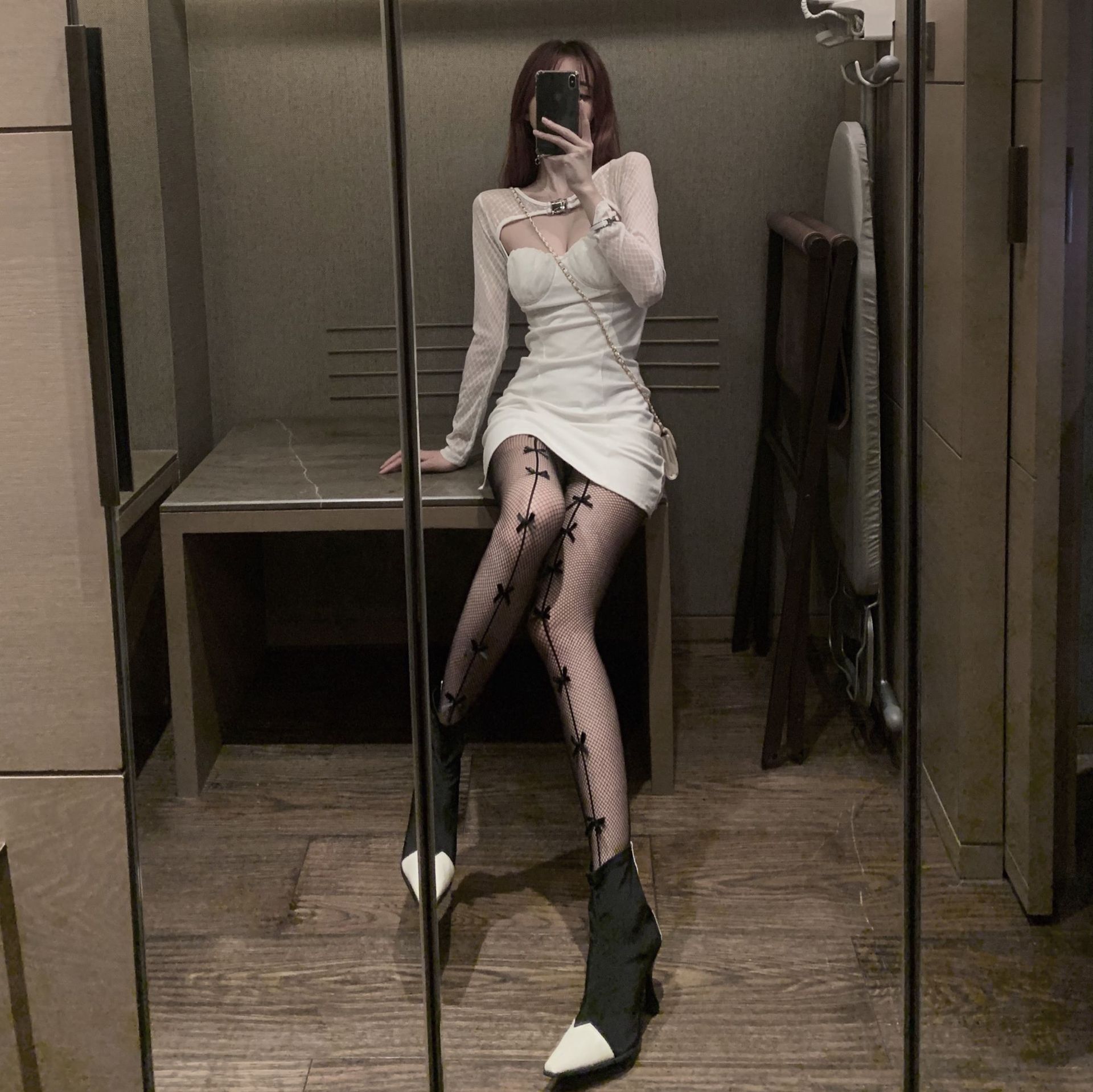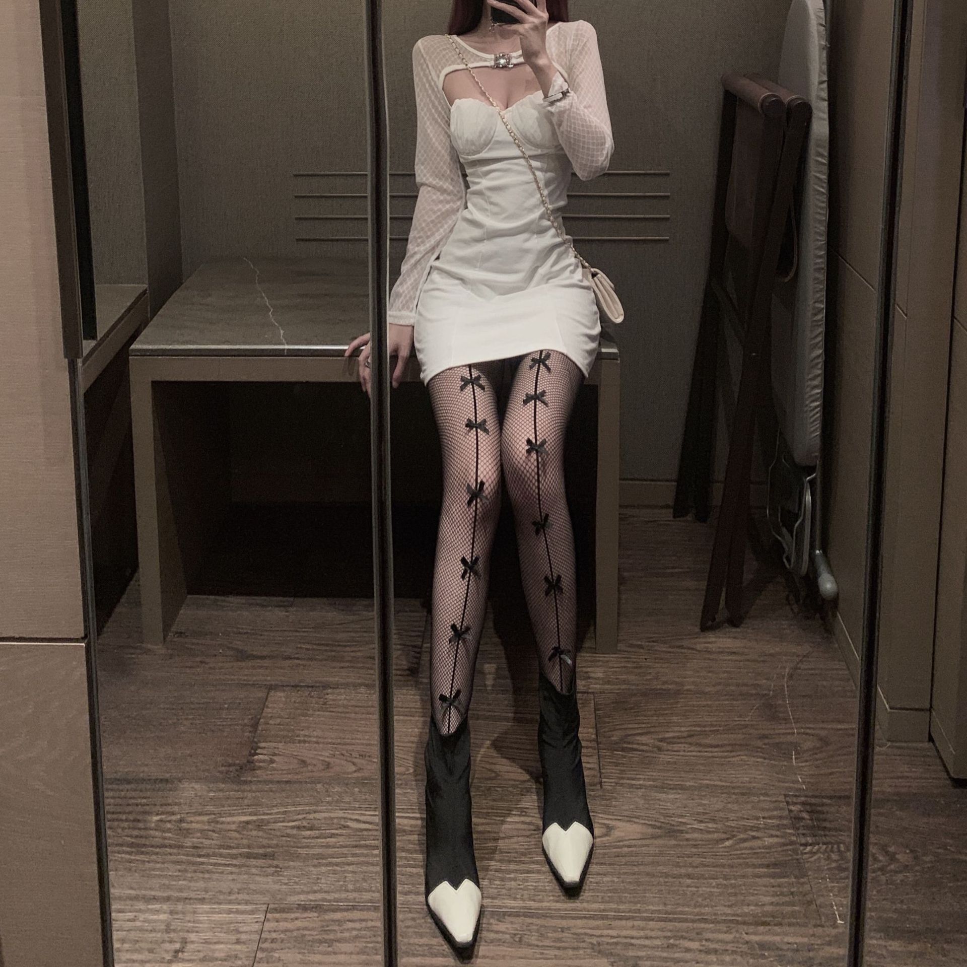暗黑色性感渔网袜连裤多个蝴蝶结情趣丝袜子女jk大网格连裤鱼镂空