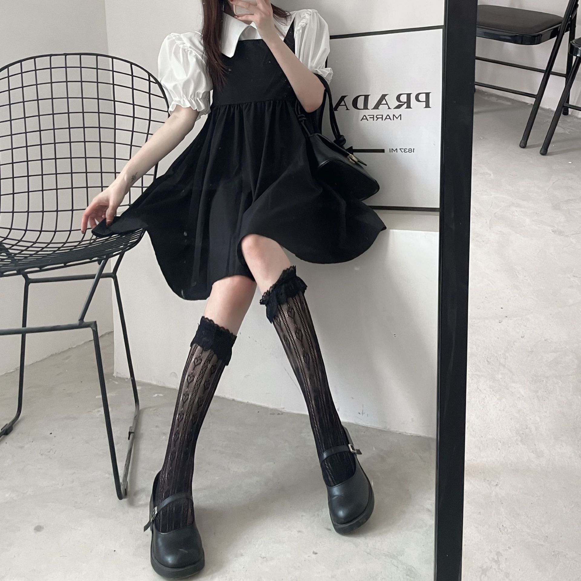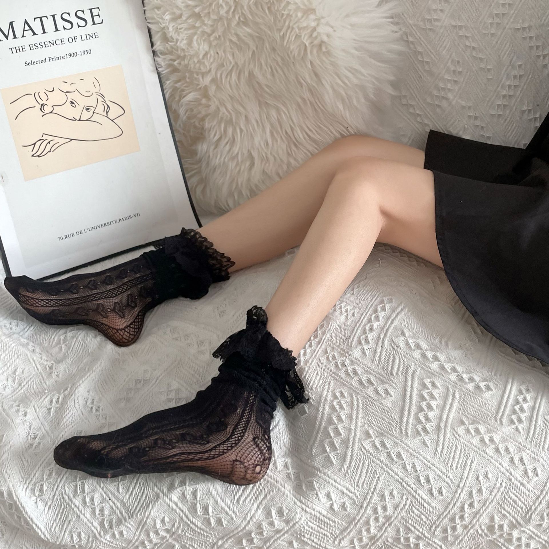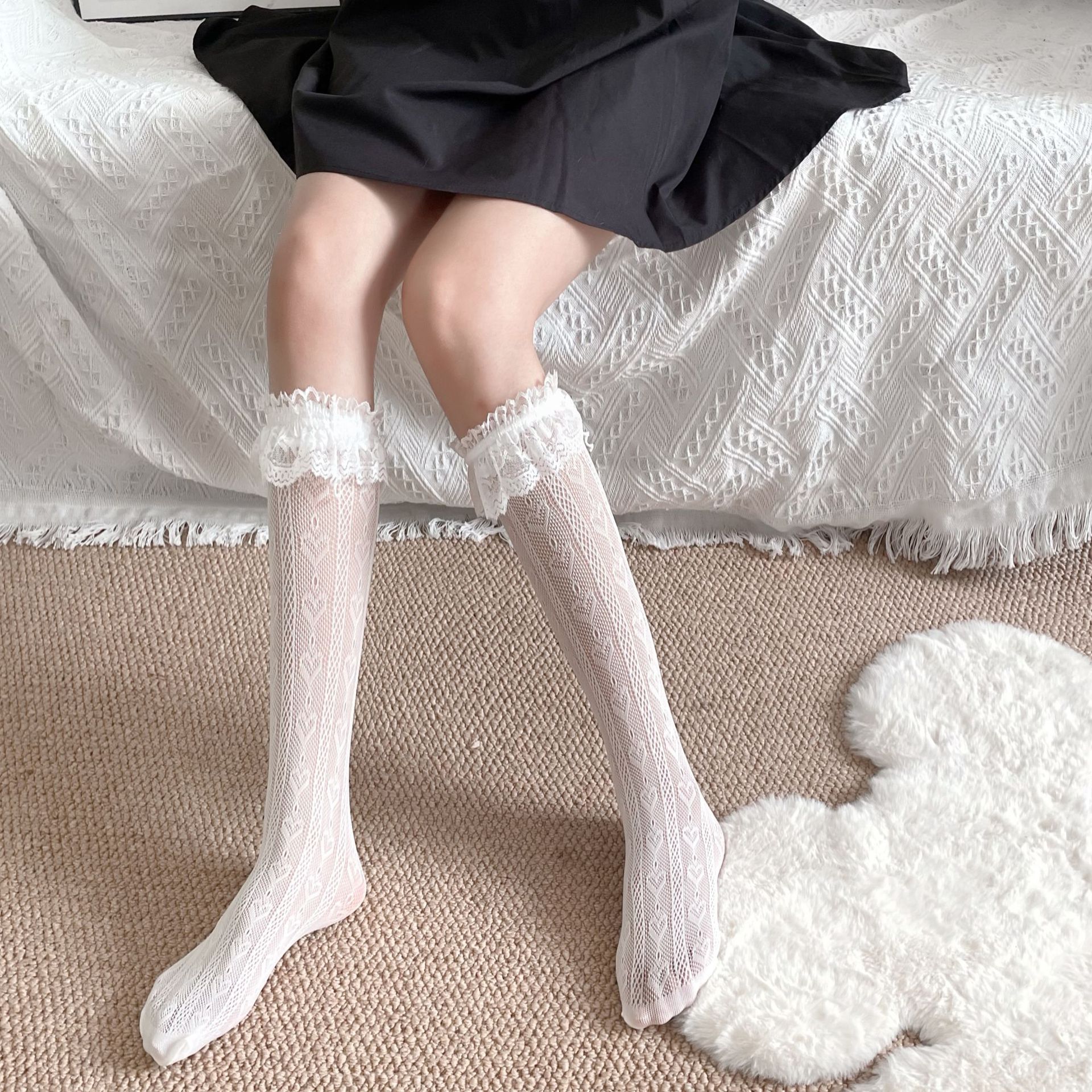 网袜女夏季薄款爱心中筒蕾丝花边洛丽塔小腿袜堆堆袜潮流百搭美腿