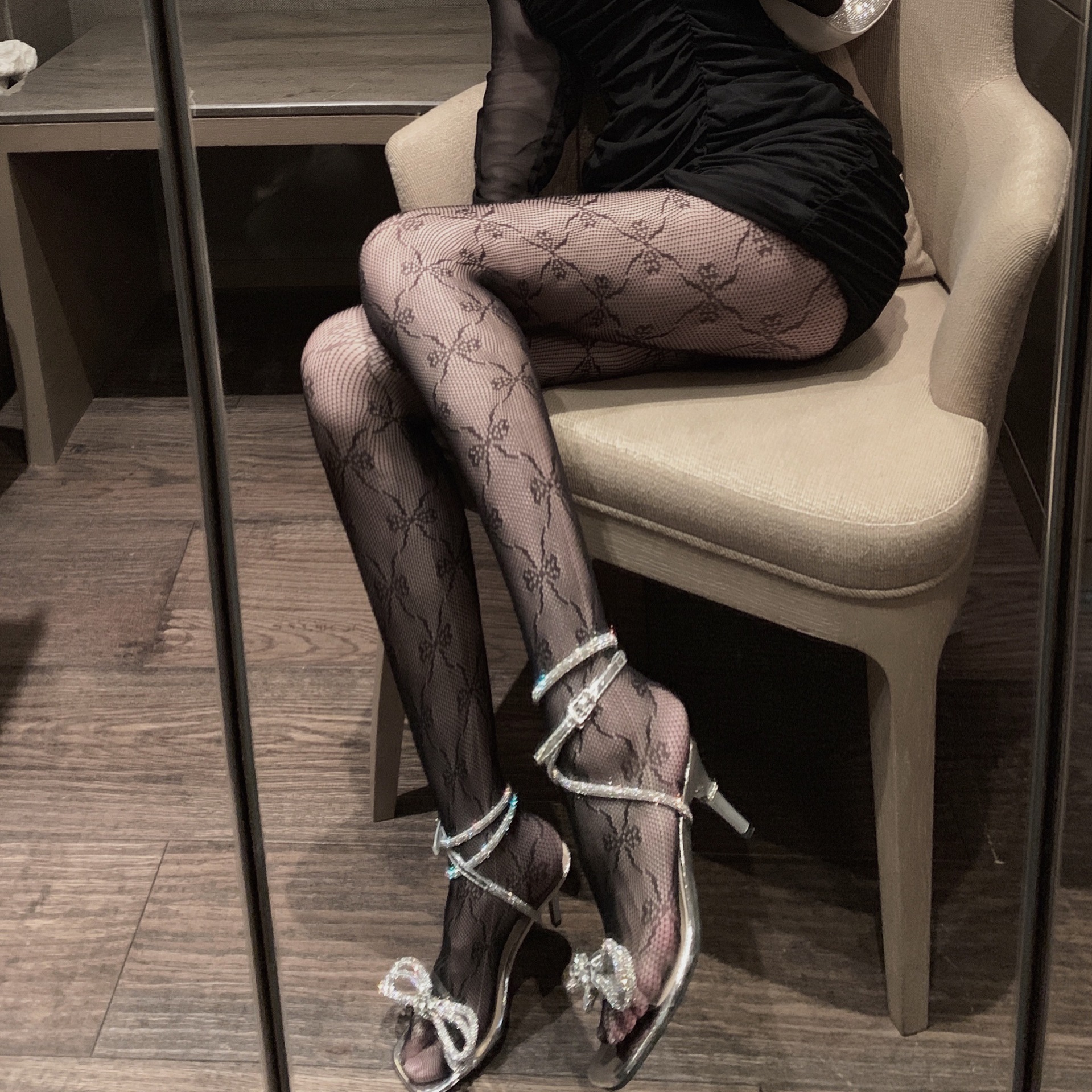 黑色丝袜女秋季薄款防勾丝不裆蝴蝶结提花镂空jk透气打底袜