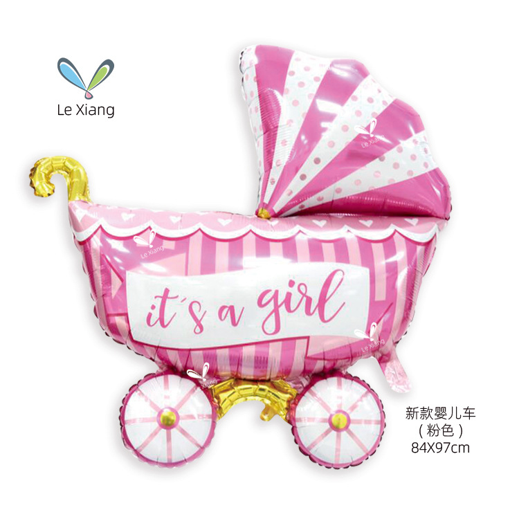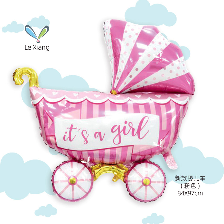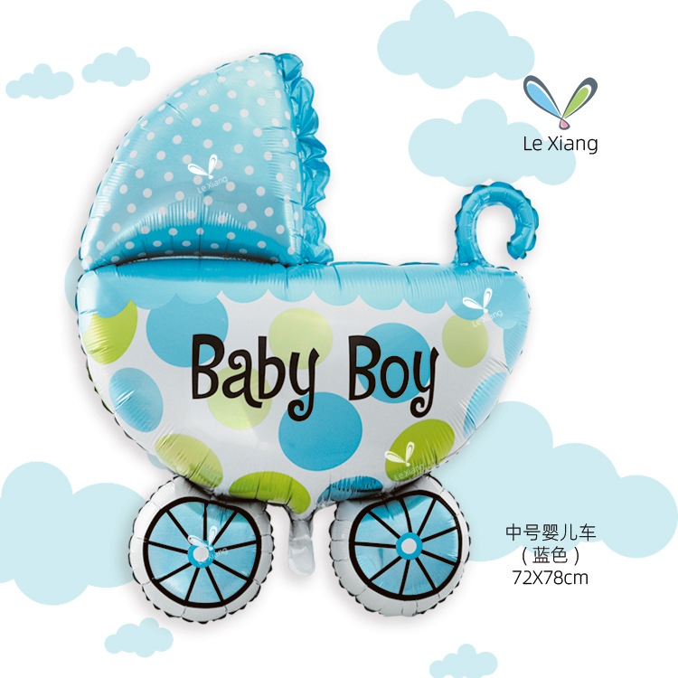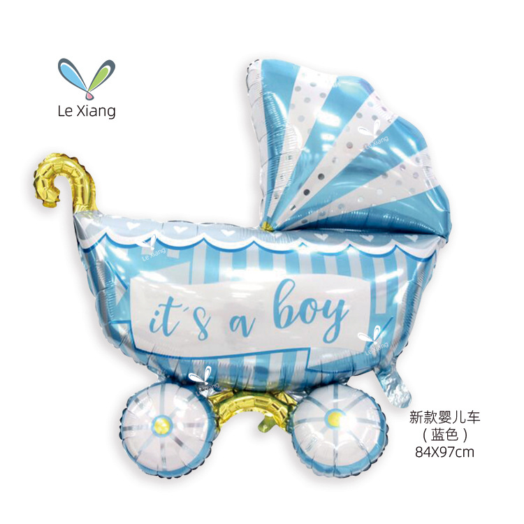 新款 大号婴儿推车 男孩女孩 铝膜气球生日派对周岁宴会 布置装饰