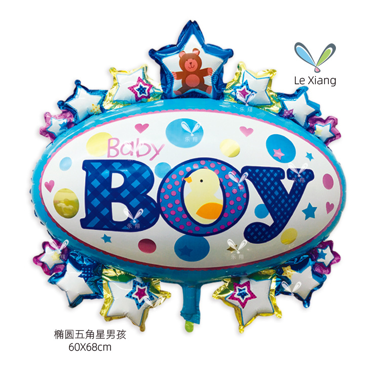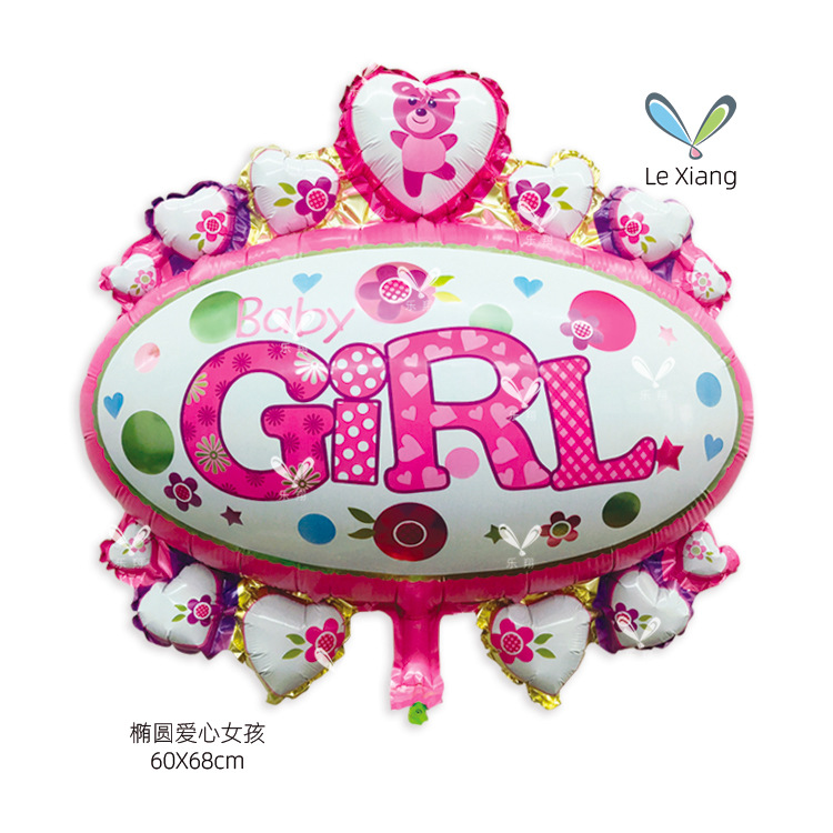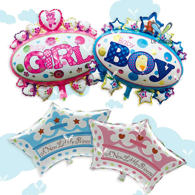 男孩女孩造型铝膜气球蝴蝶结椭圆对话框皇冠派对生日周岁宴会装饰