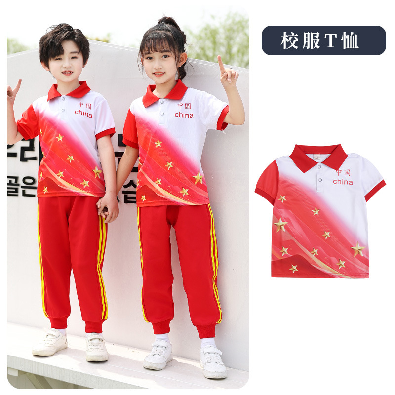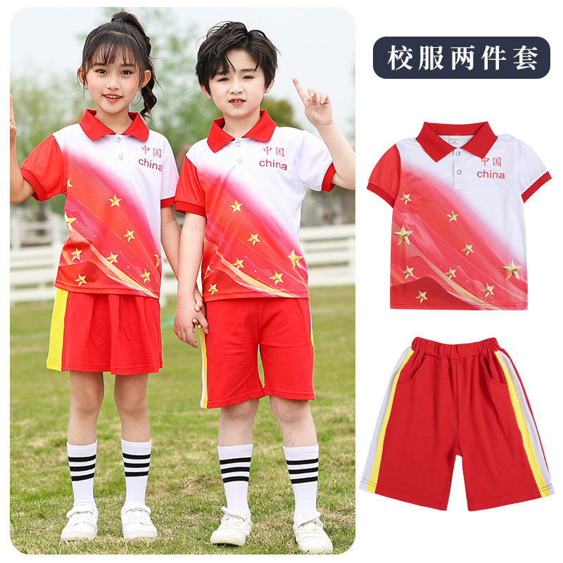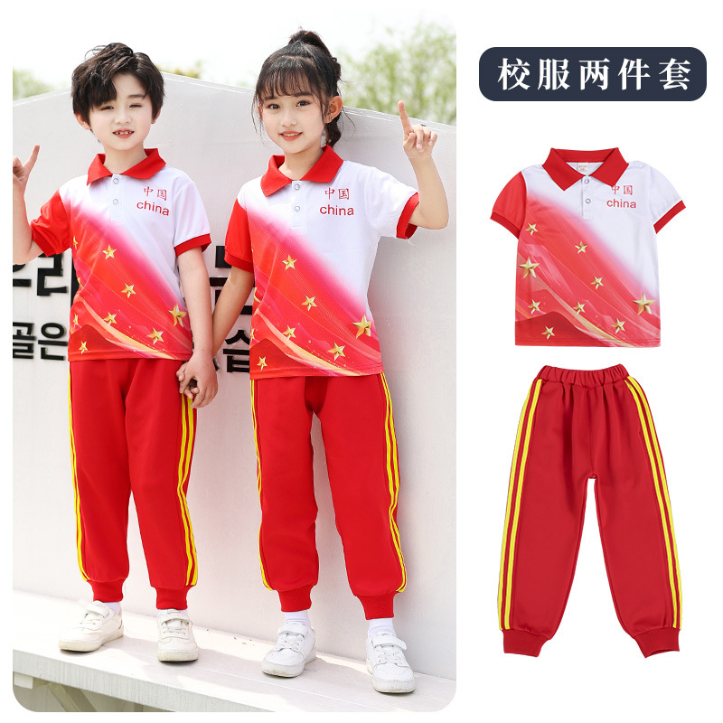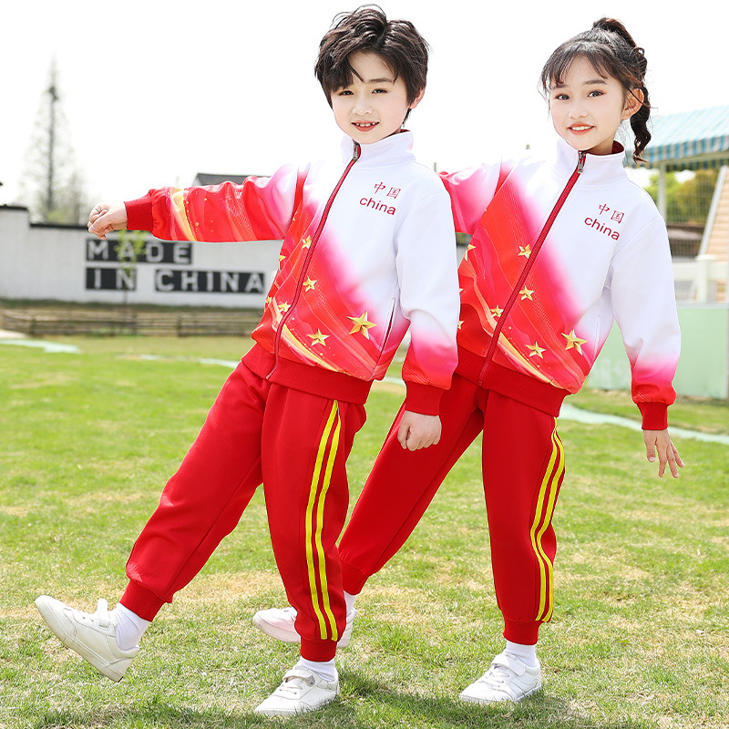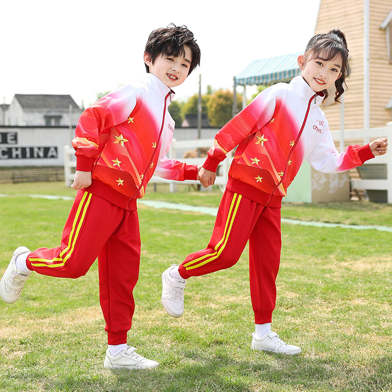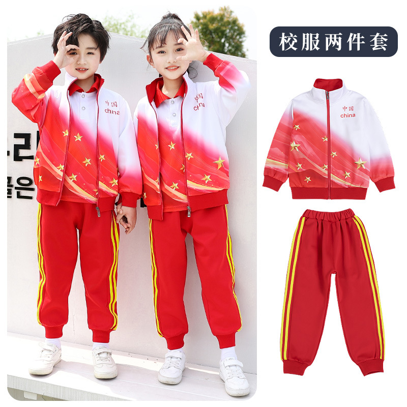 幼儿园园服新品学院风运动会中国红校服小学生春秋套装夏季四件套