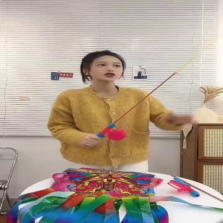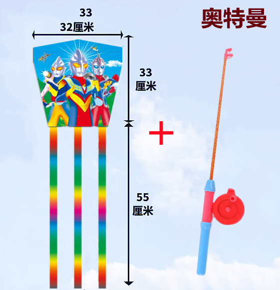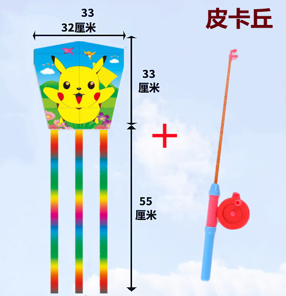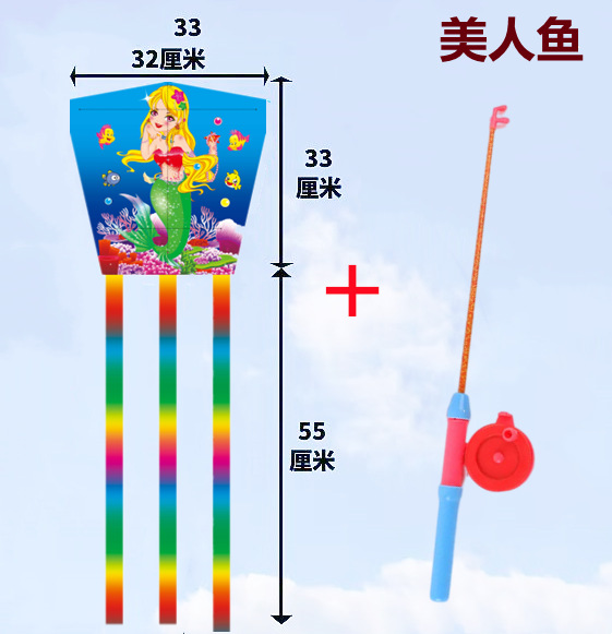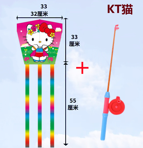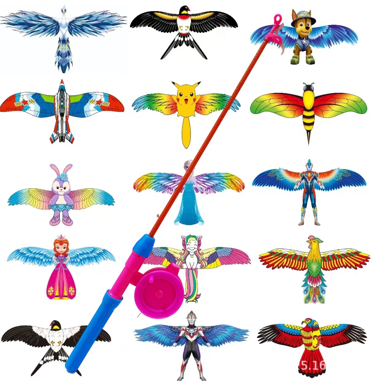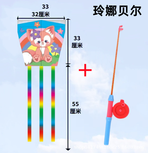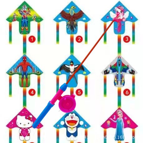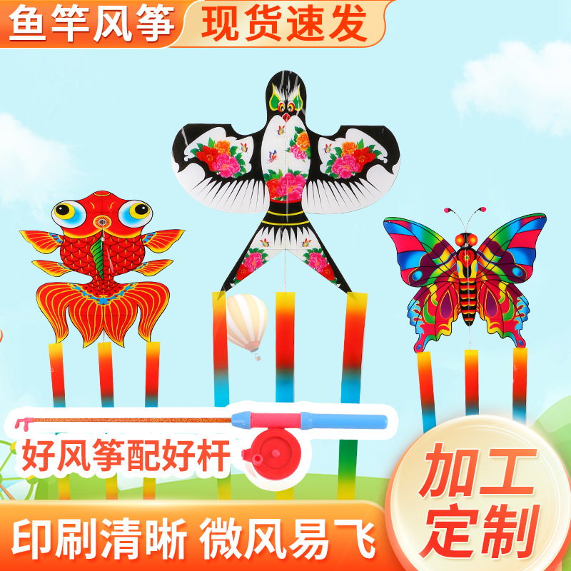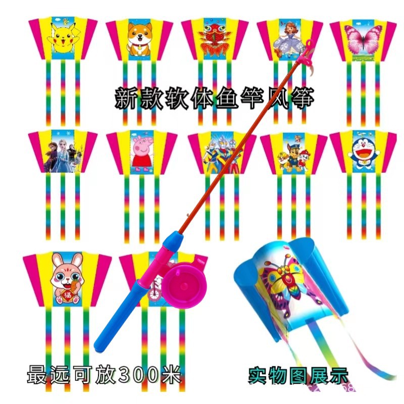 儿童手持钓鱼竿风筝动物图案pe塑料材质伸缩杆户外小玩具鱼竿风筝