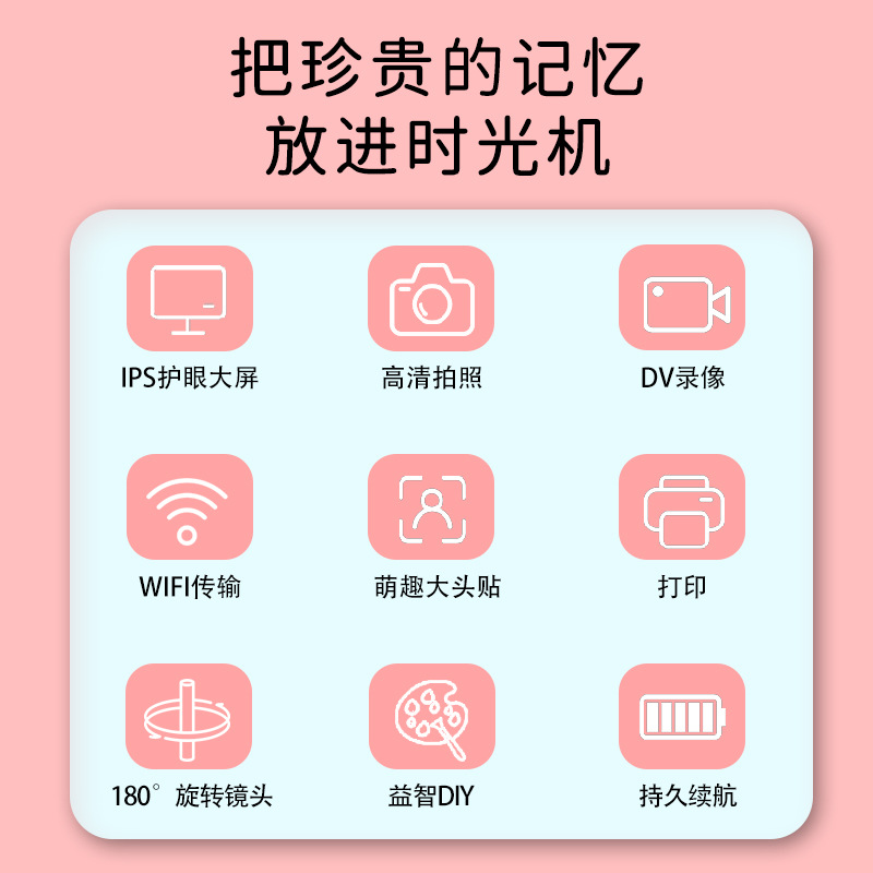 新款儿童拍立得照相机数码大屏高清相机送小孩礼物可连接手机迷你