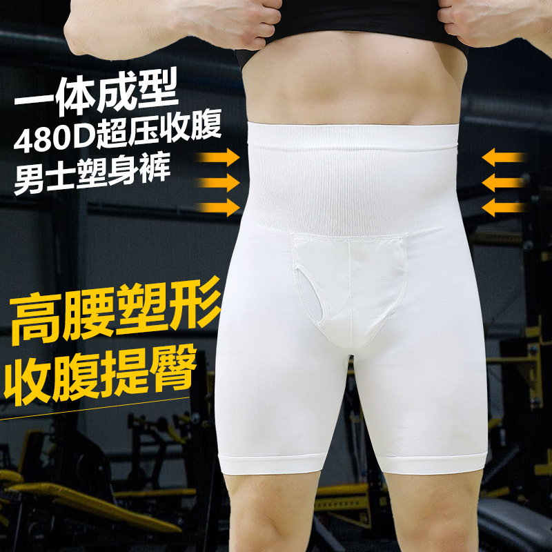 跨境爆款夏季男士透气束腰提臀塑腿塑形收腹紧身修身五分塑身裤