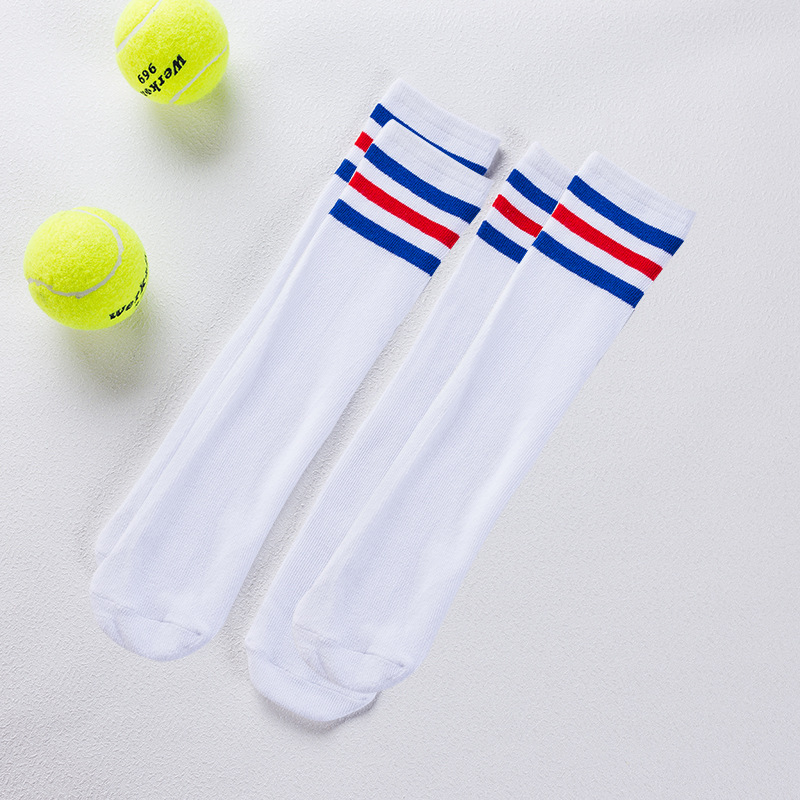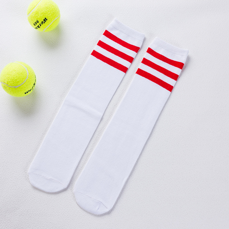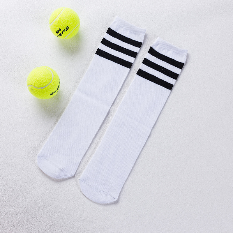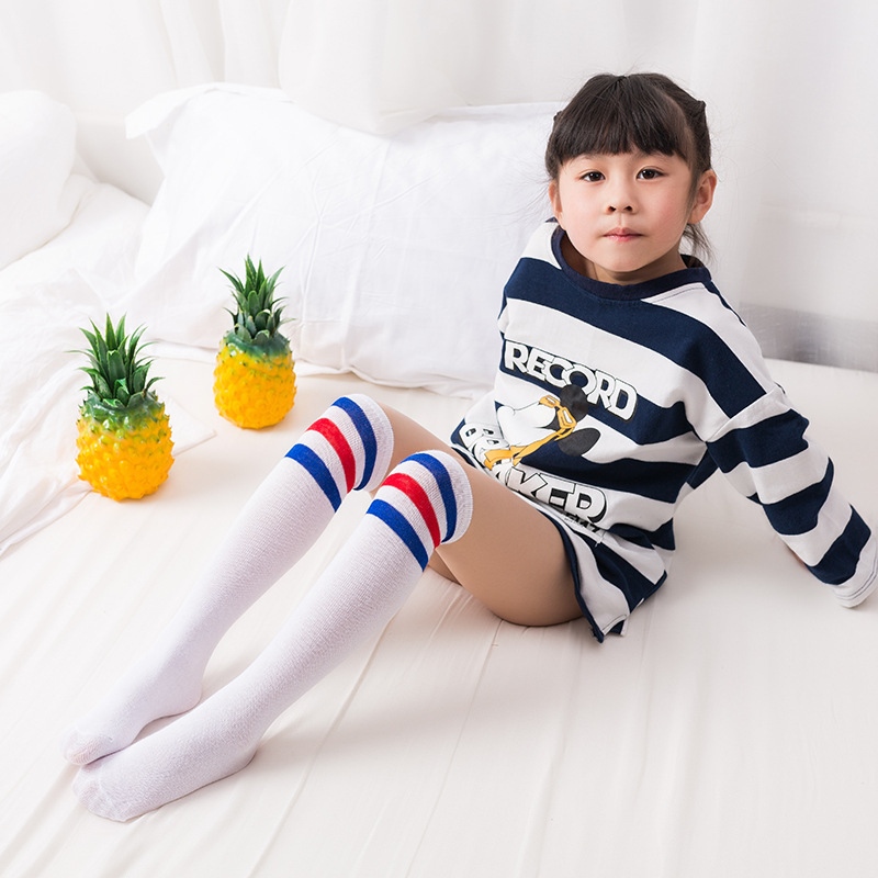 学生六一薄款天鹅绒儿童长筒袜过膝三杠条纹女童中筒袜白色舞蹈袜