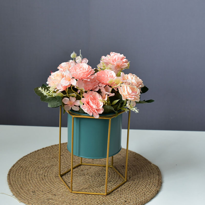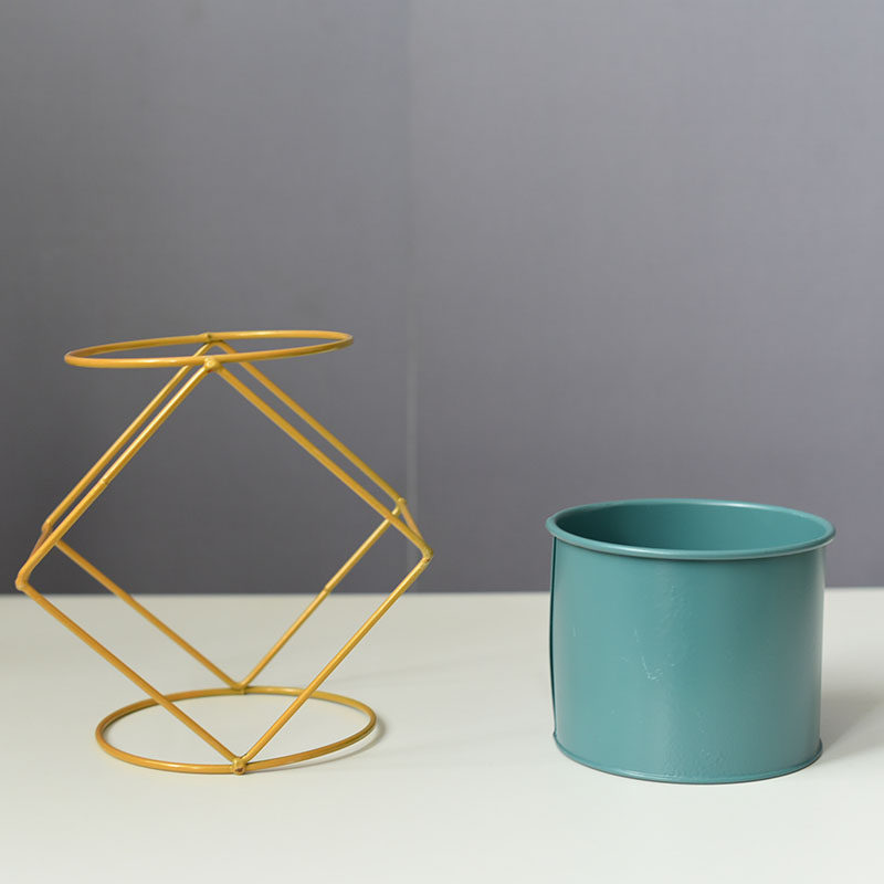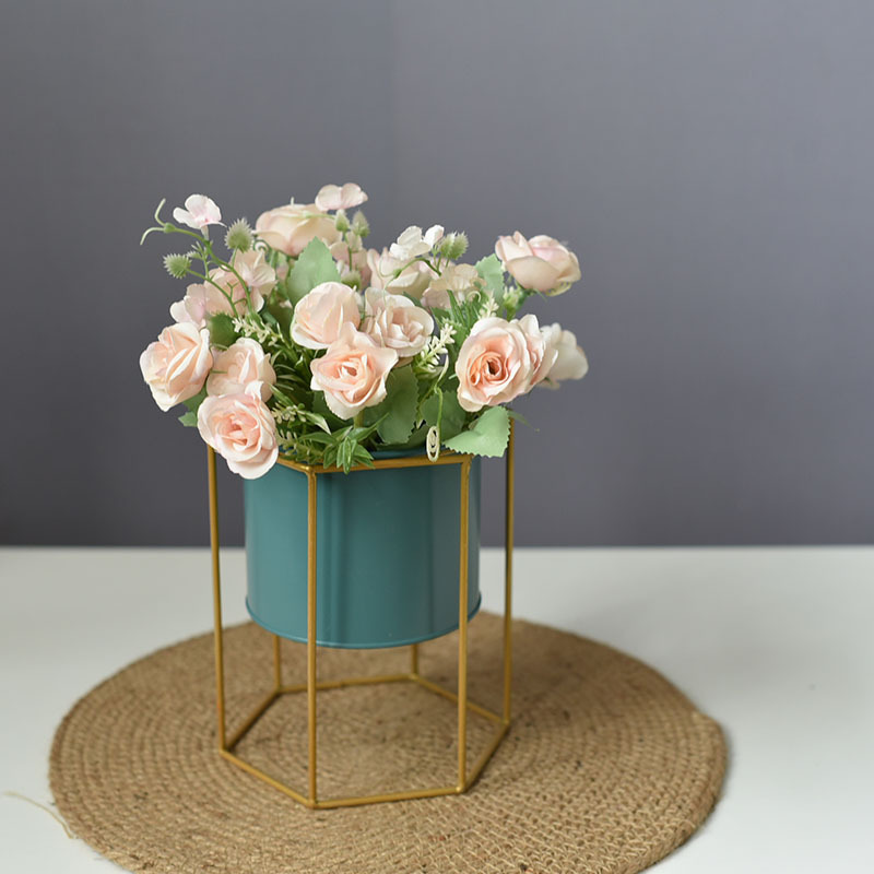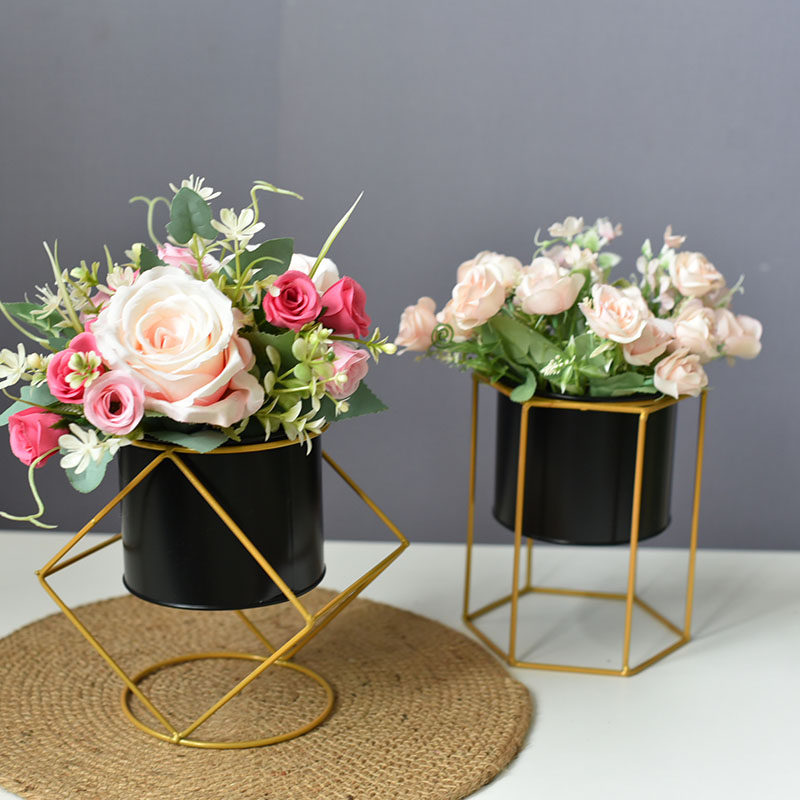 铁艺花篮客厅餐桌茶几花束摆设室内装饰花盆北欧花篮金色迷你