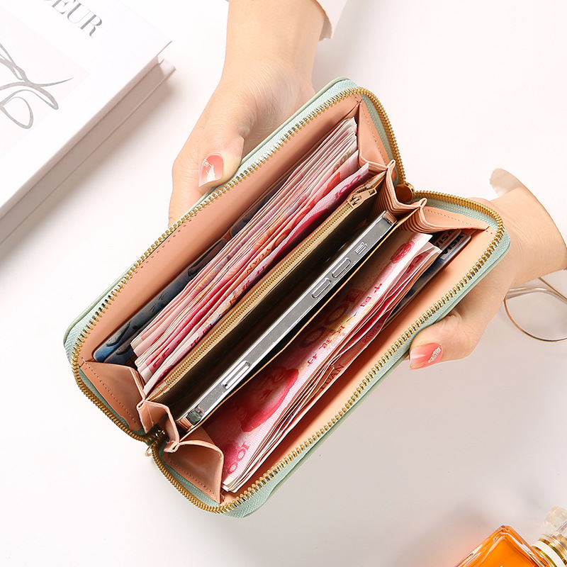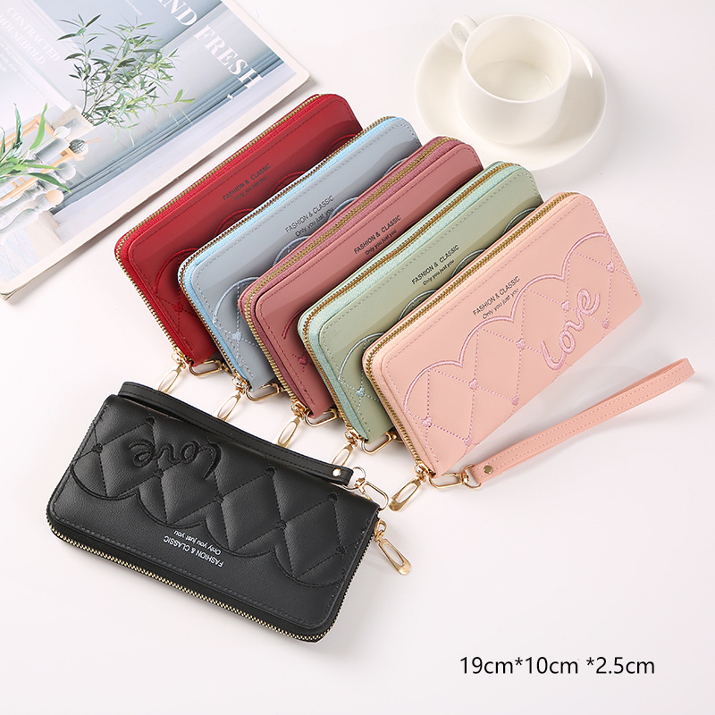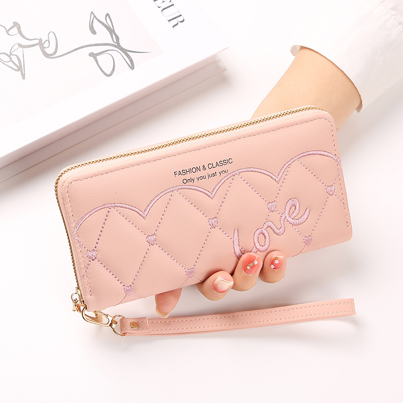 批发长款钱包爱心pu绣线女士手拿钱夹多卡位时尚百搭手机包零钱包