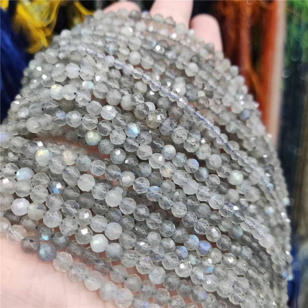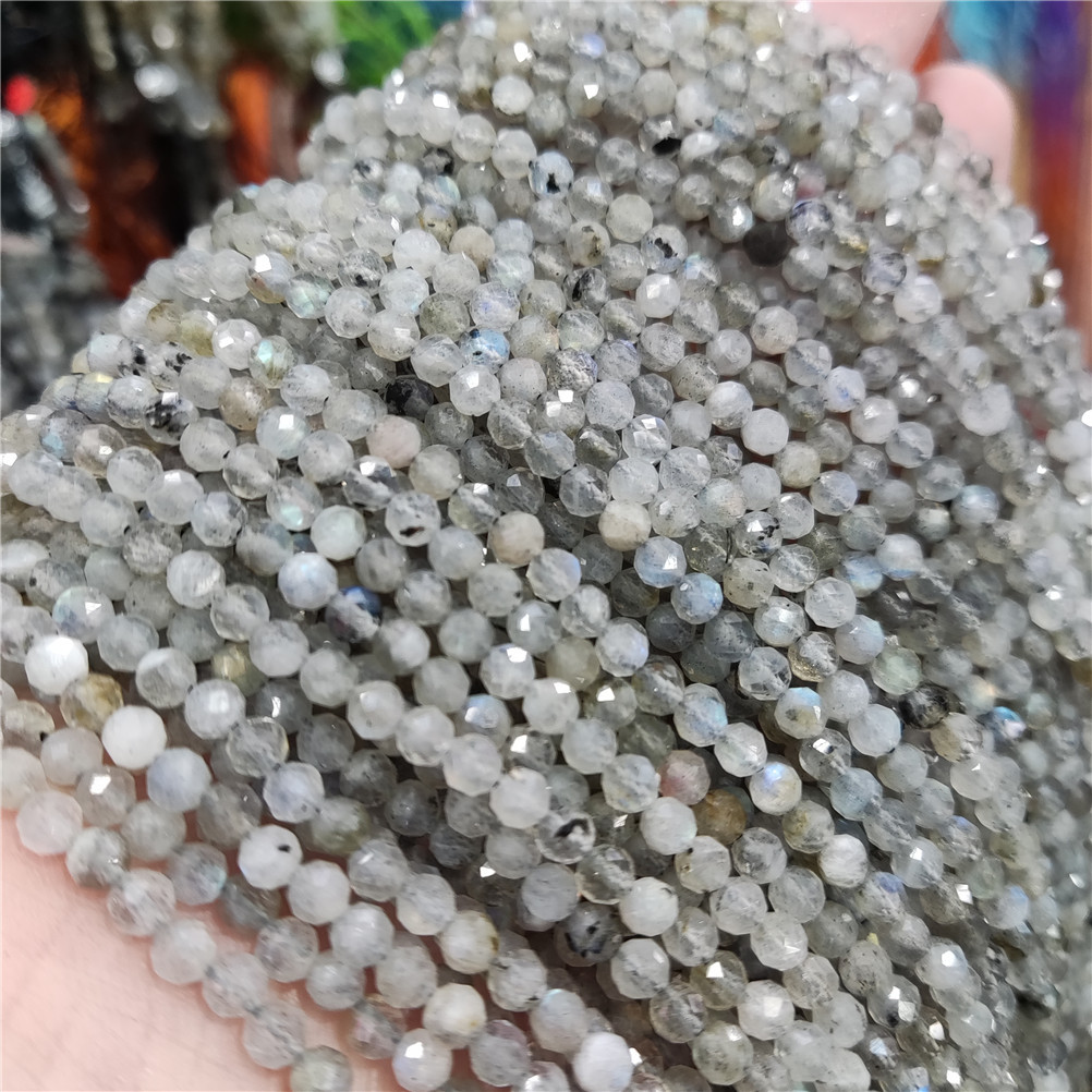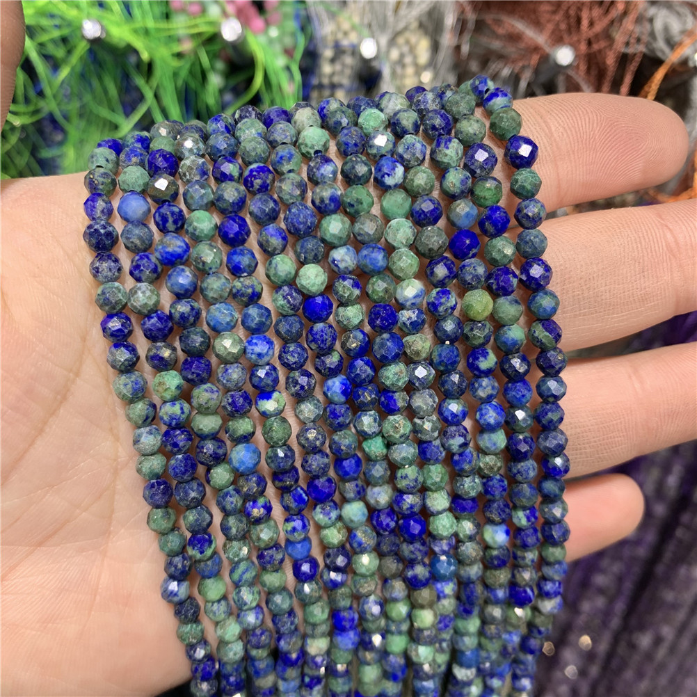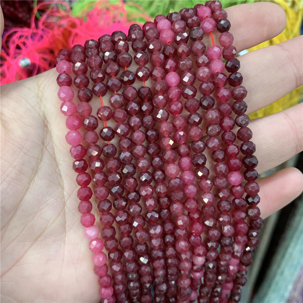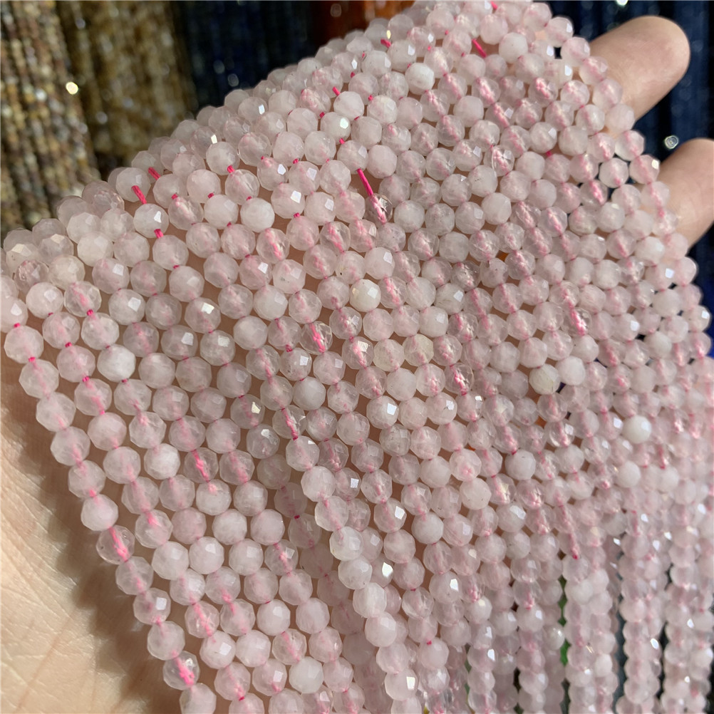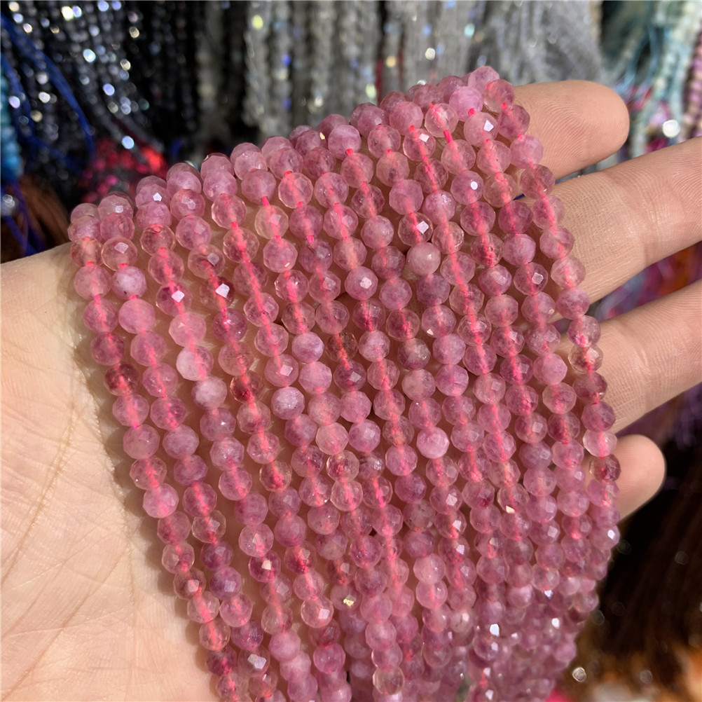 4mm切面刻面圆珠天然石小珠子手工diy草莓晶青金串珠首饰配件批发