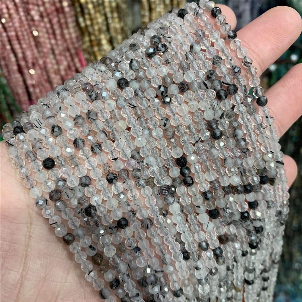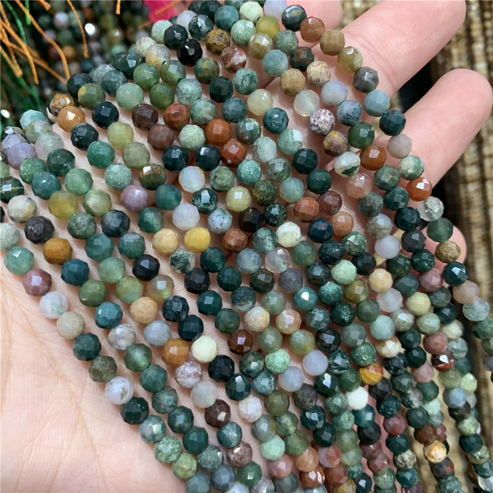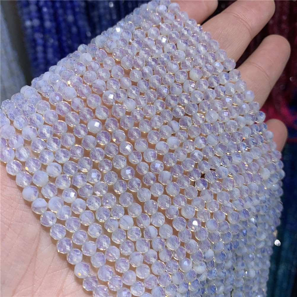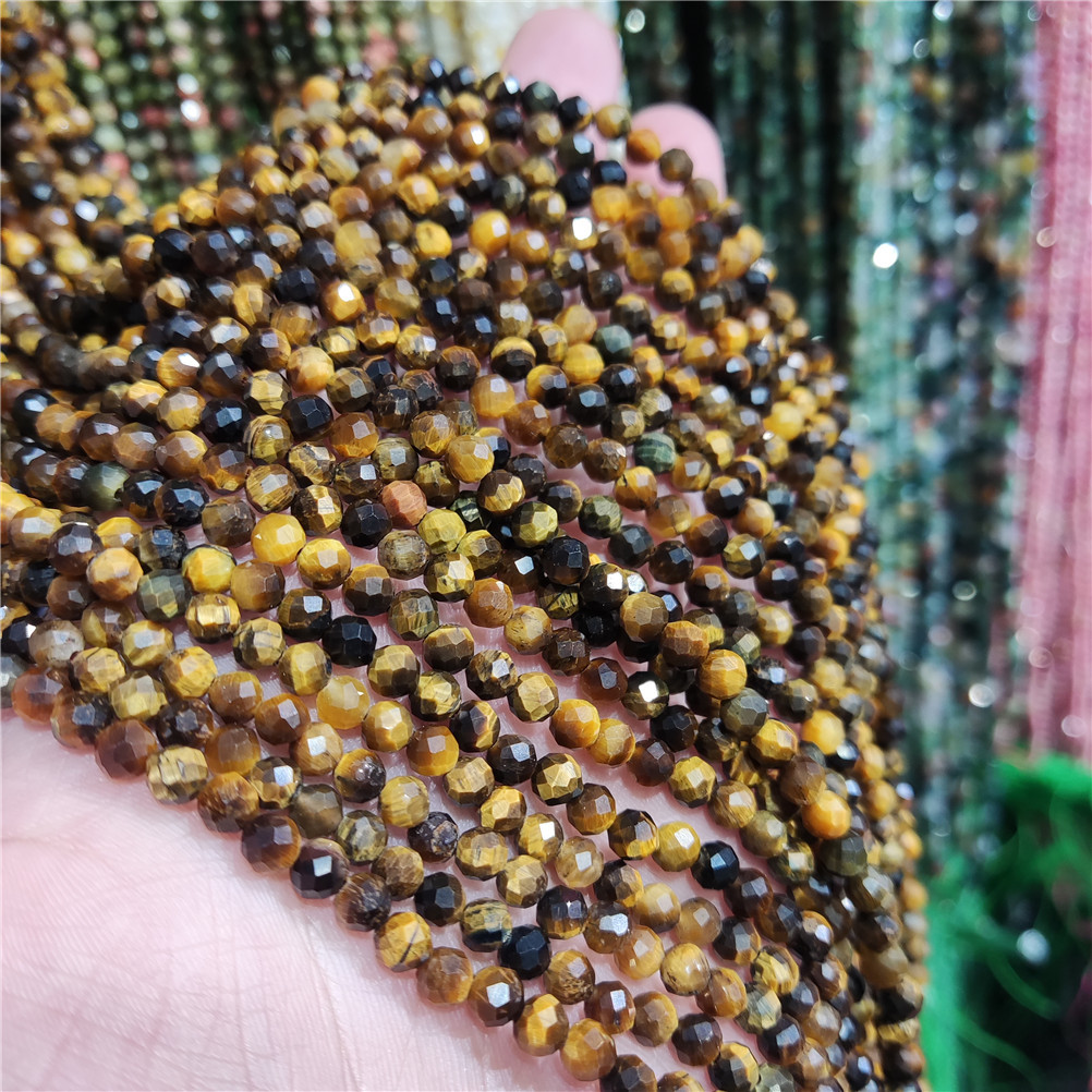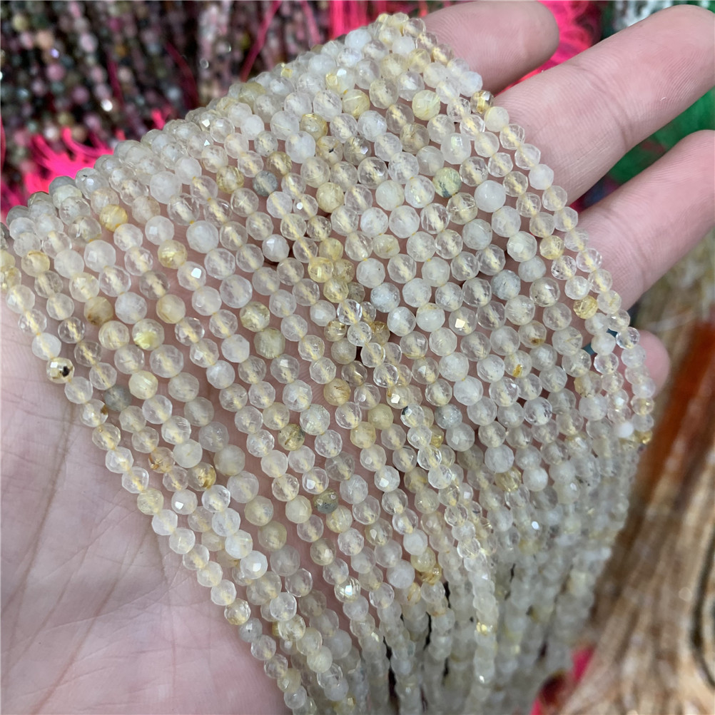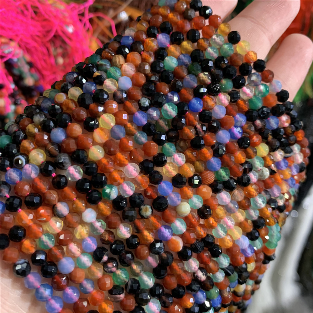 4mm切面刻面圆珠天然石小珠子手工diy草莓晶青金串珠首饰配件批发