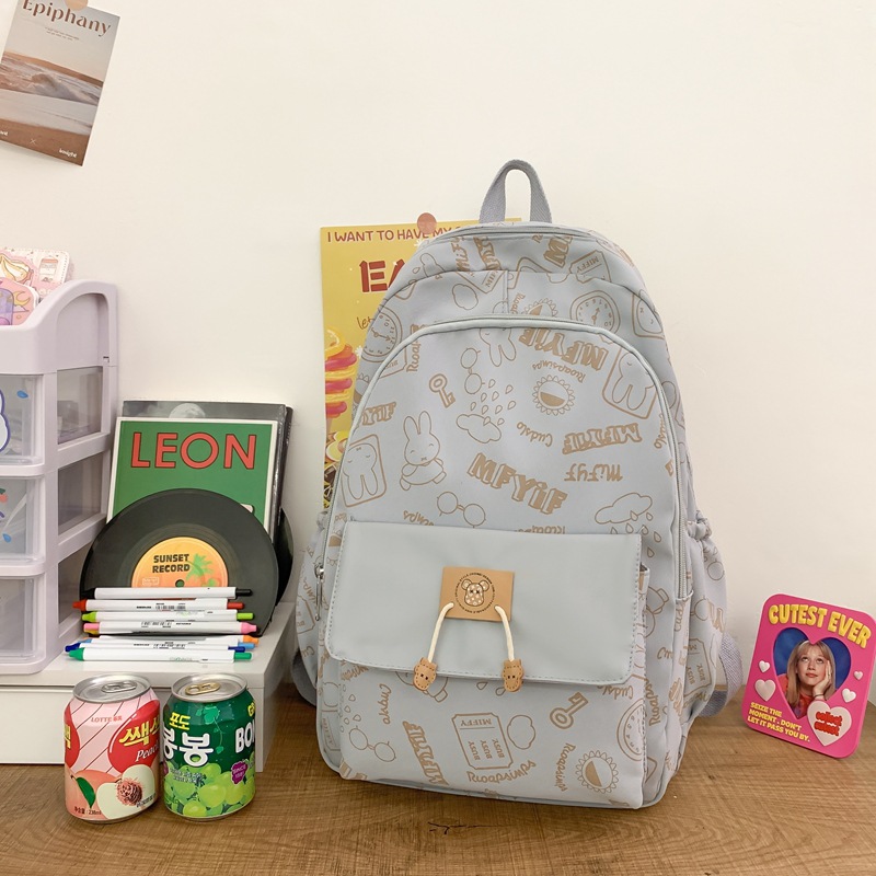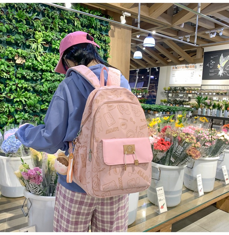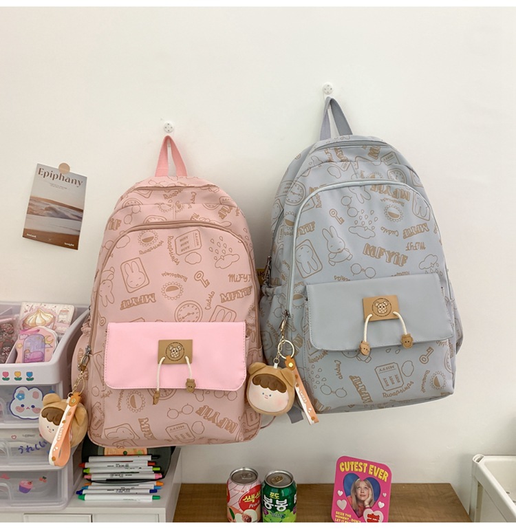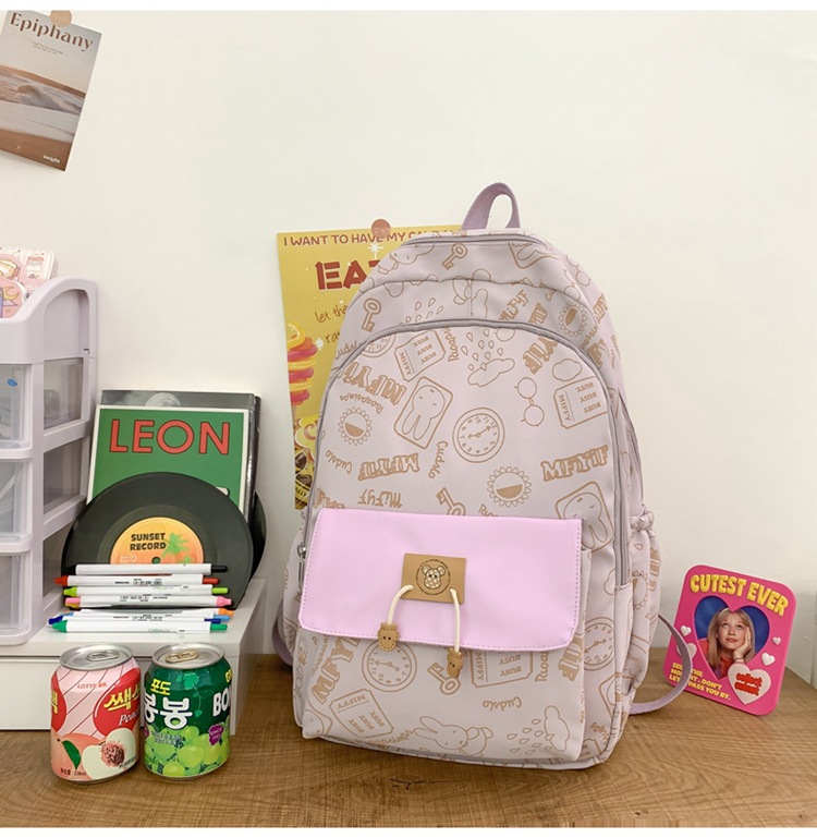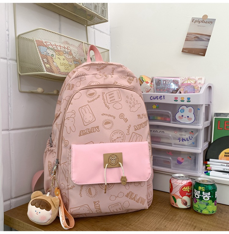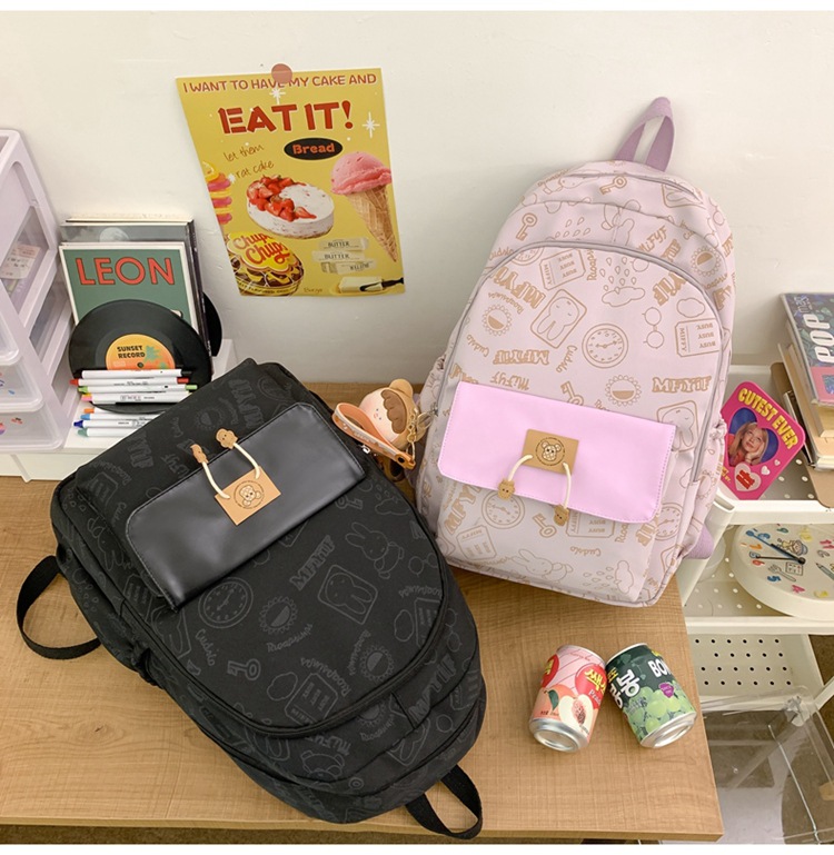 ins可爱书包女2023新款少女双肩包涂鸦初中高中小学生背包
