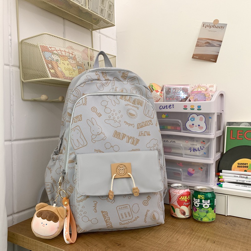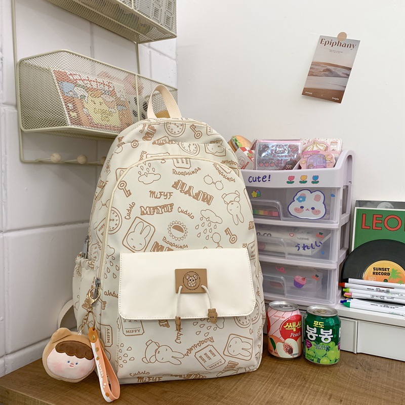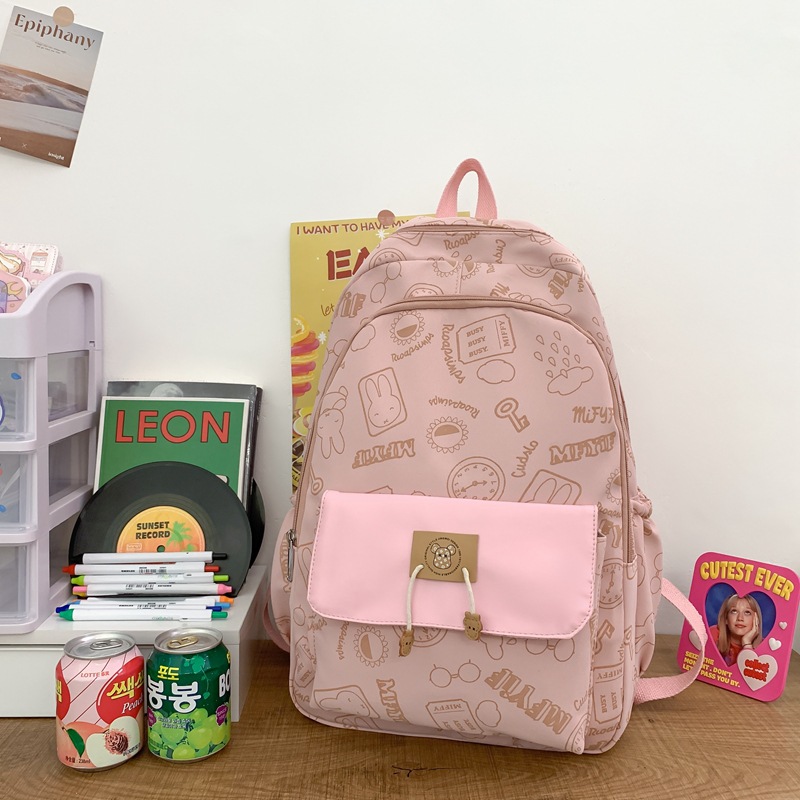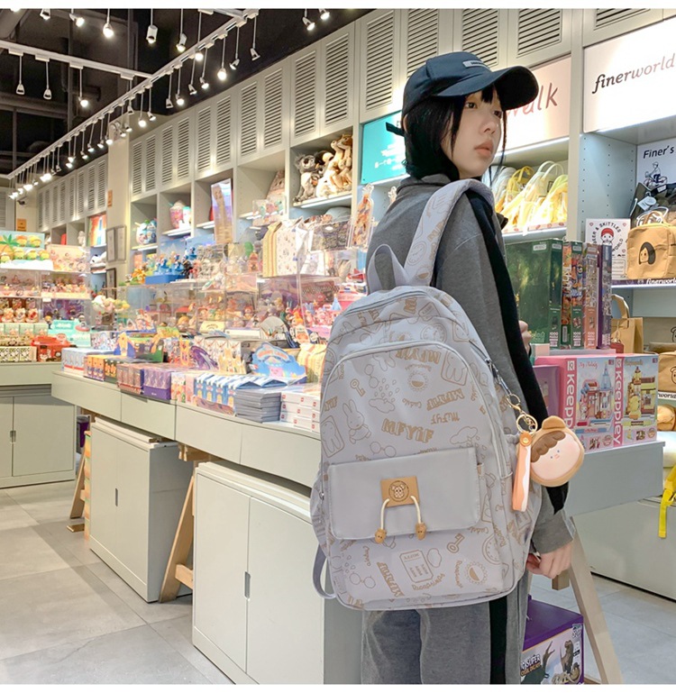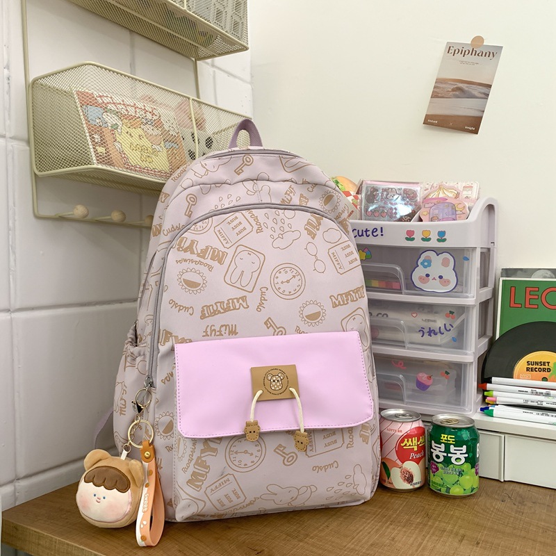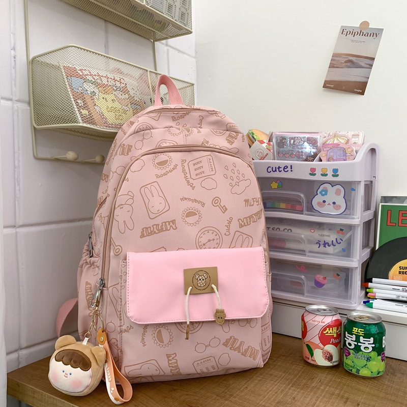 ins可爱书包女2023新款少女双肩包涂鸦初中高中小学生背包