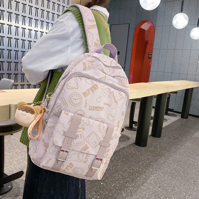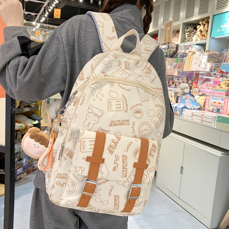 日系ins睿营书包女高中学生初中生大容量卡通双肩包森系百搭背包