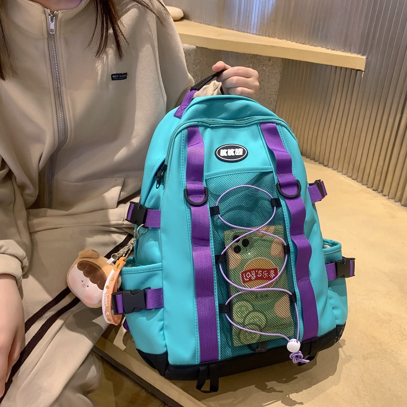 批发新款潮酷时尚撞色双肩包中学生书包潮流休闲背包
