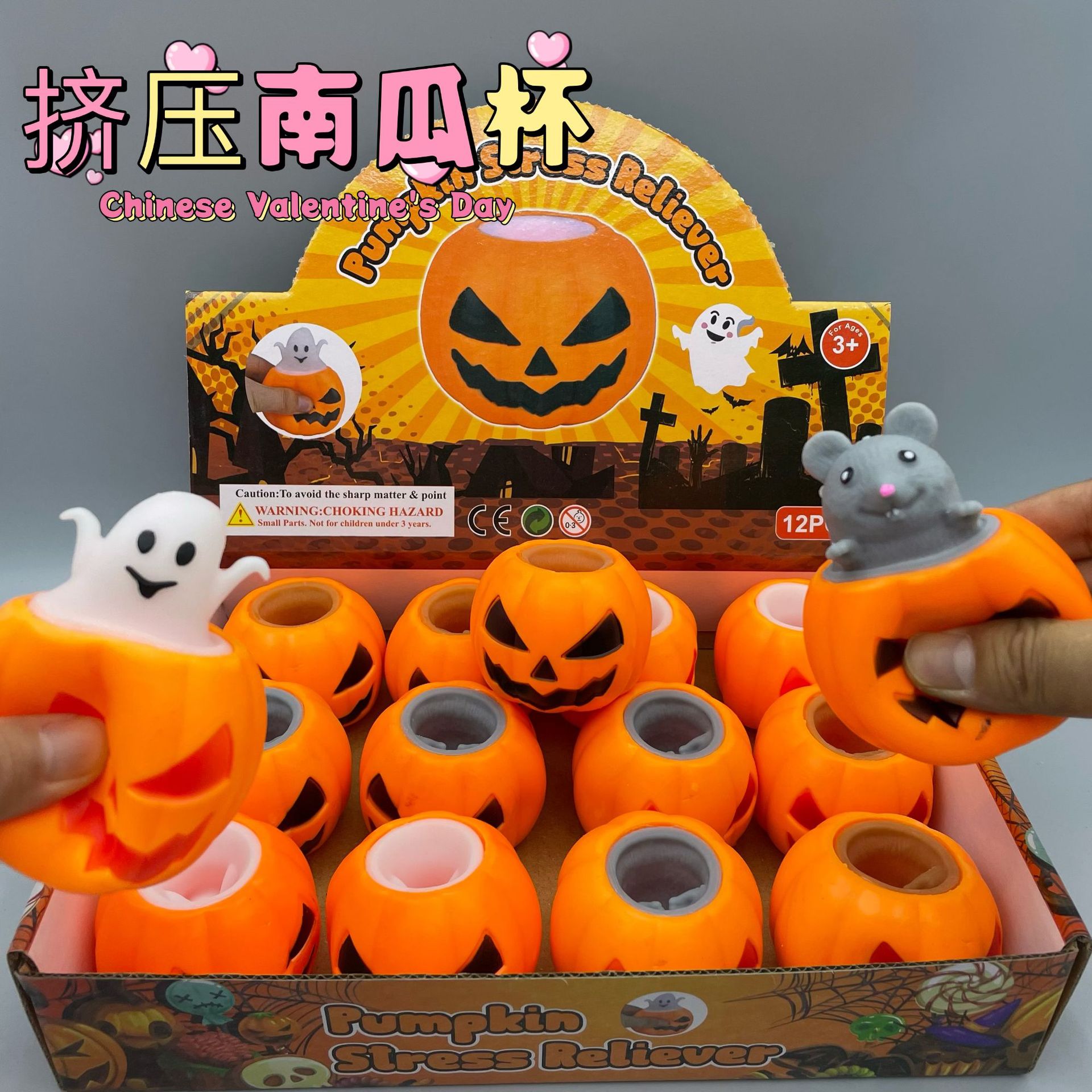 跨境万圣节新款搞怪南瓜头捏捏乐玩具解压南瓜杯玩具现货工厂批发