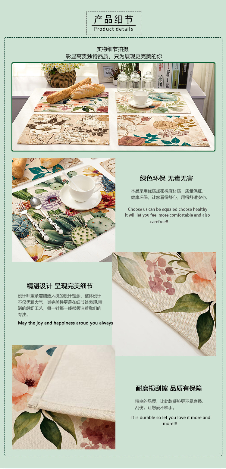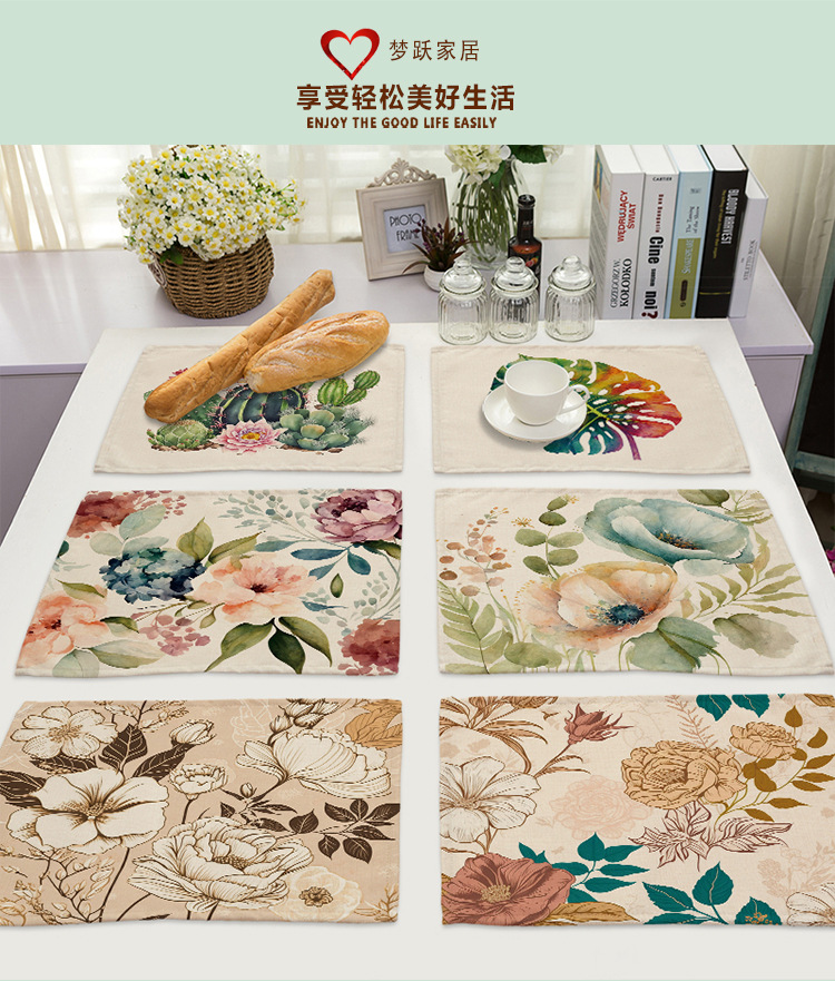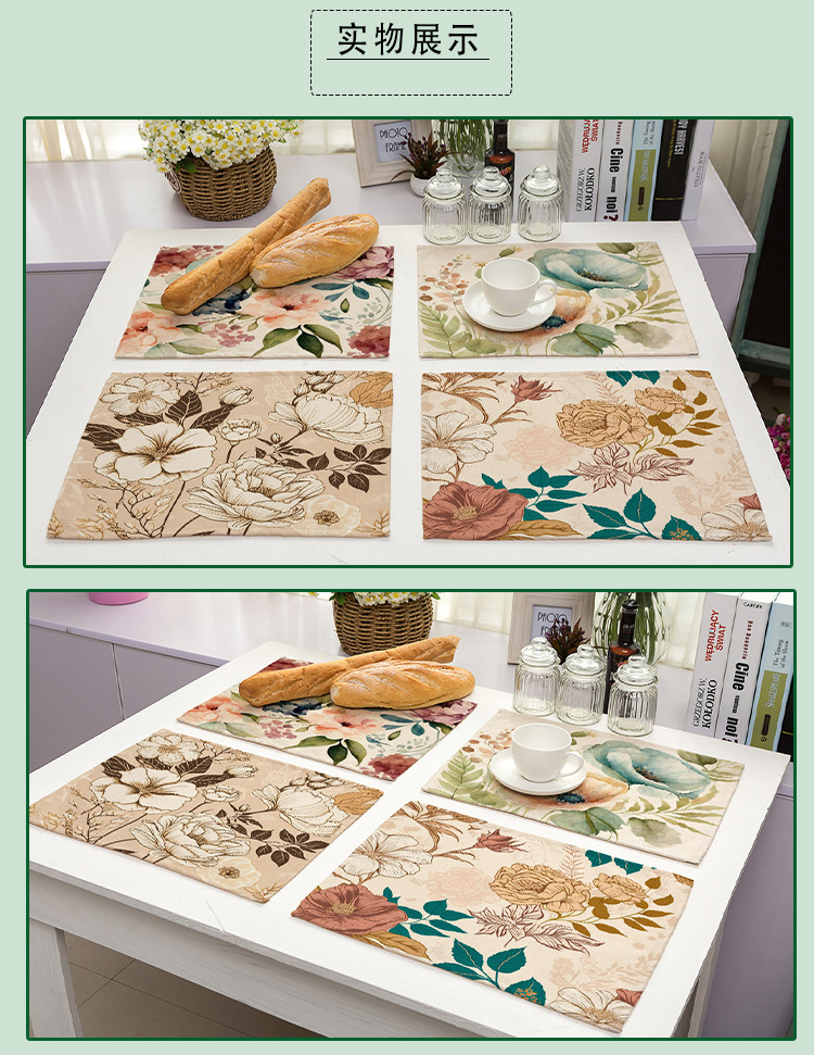 新款 外贸热销棉麻西餐垫 家用餐布餐 厅装饰复古 印花餐垫 批发